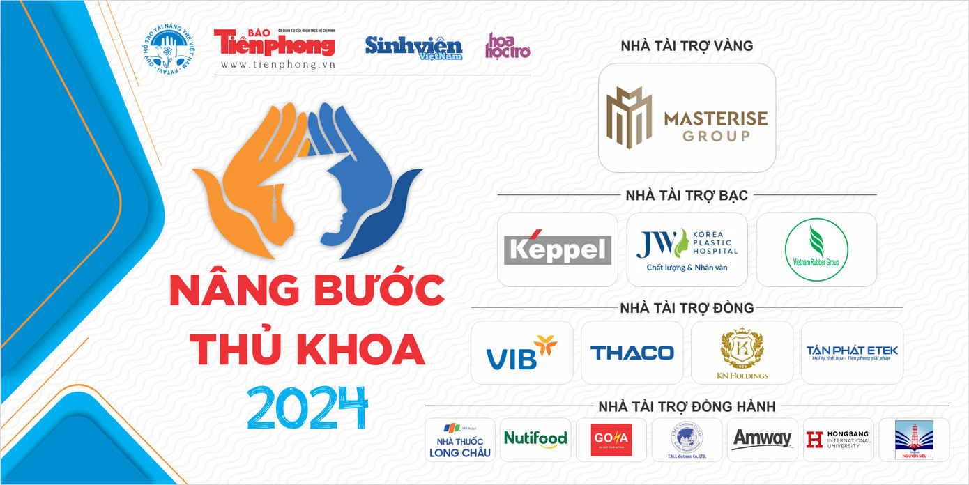 | Đại diện các đơn vị nhà tài trợ cùng trao học bổng 'Nâng bước thủ khoa' cho sinh viên. |