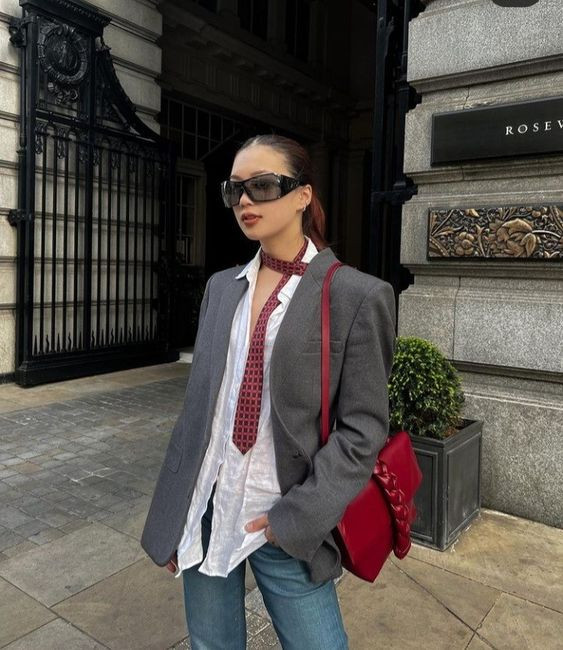 Các tín đồ thời trang nhanh chóng bắt trend, cà vạt đỏ đô trở thành khăn mảnh, chân váy kẻ caro được trưng dụng để tạo nên diện mạo thời thượng.
