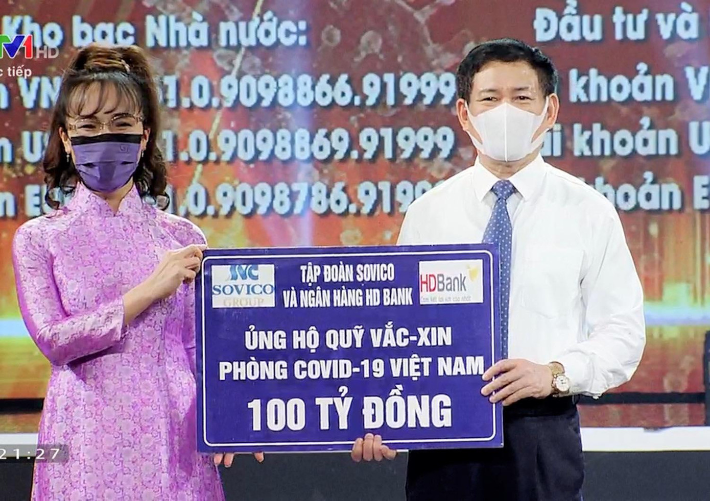 Tại buổi lễ, đại diện các bộ, ngành, chính quyền địa phương, doanh nghiệp và các nhà hảo tâm đã ủng hộ, cam kết ủng hộ với số tiền lớn cho Qũy vaccine phòng, chống COVID-19.
