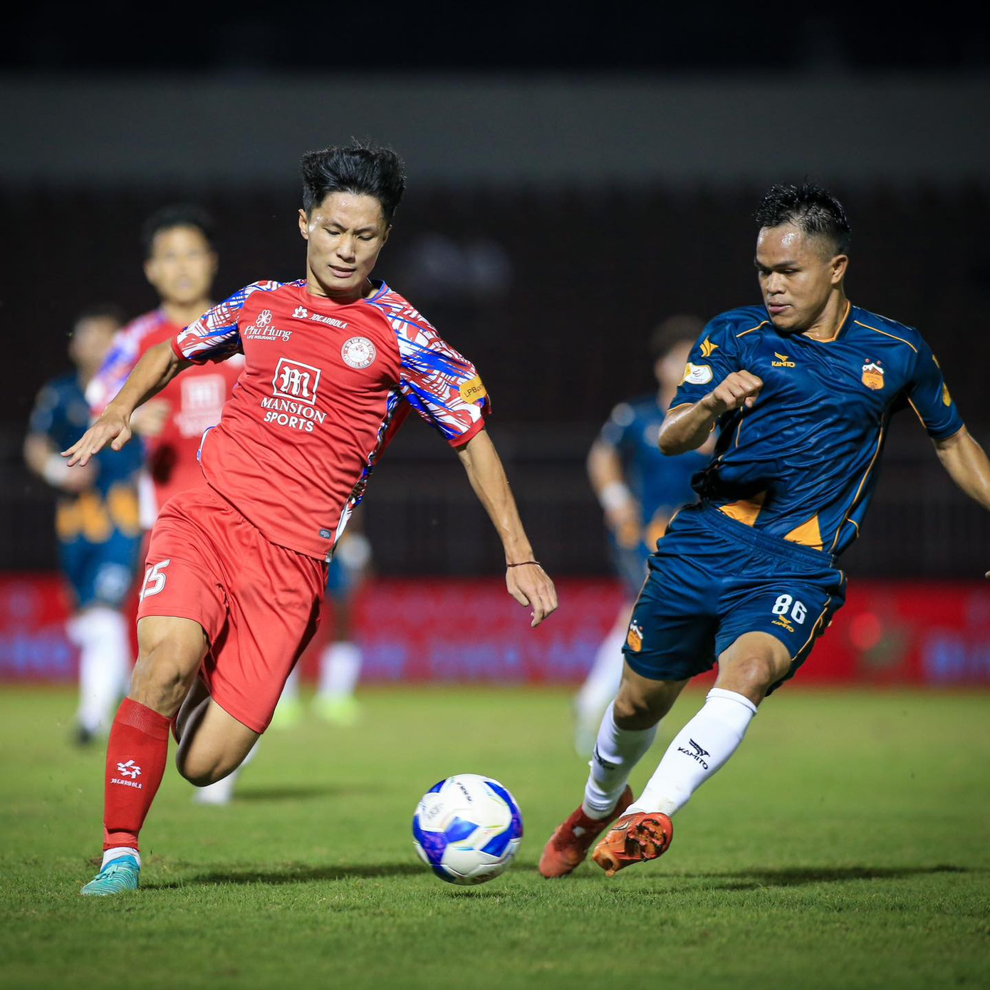 TP.HCM ra sân trong trang phục màu đỏ là đội giao bóng trước.