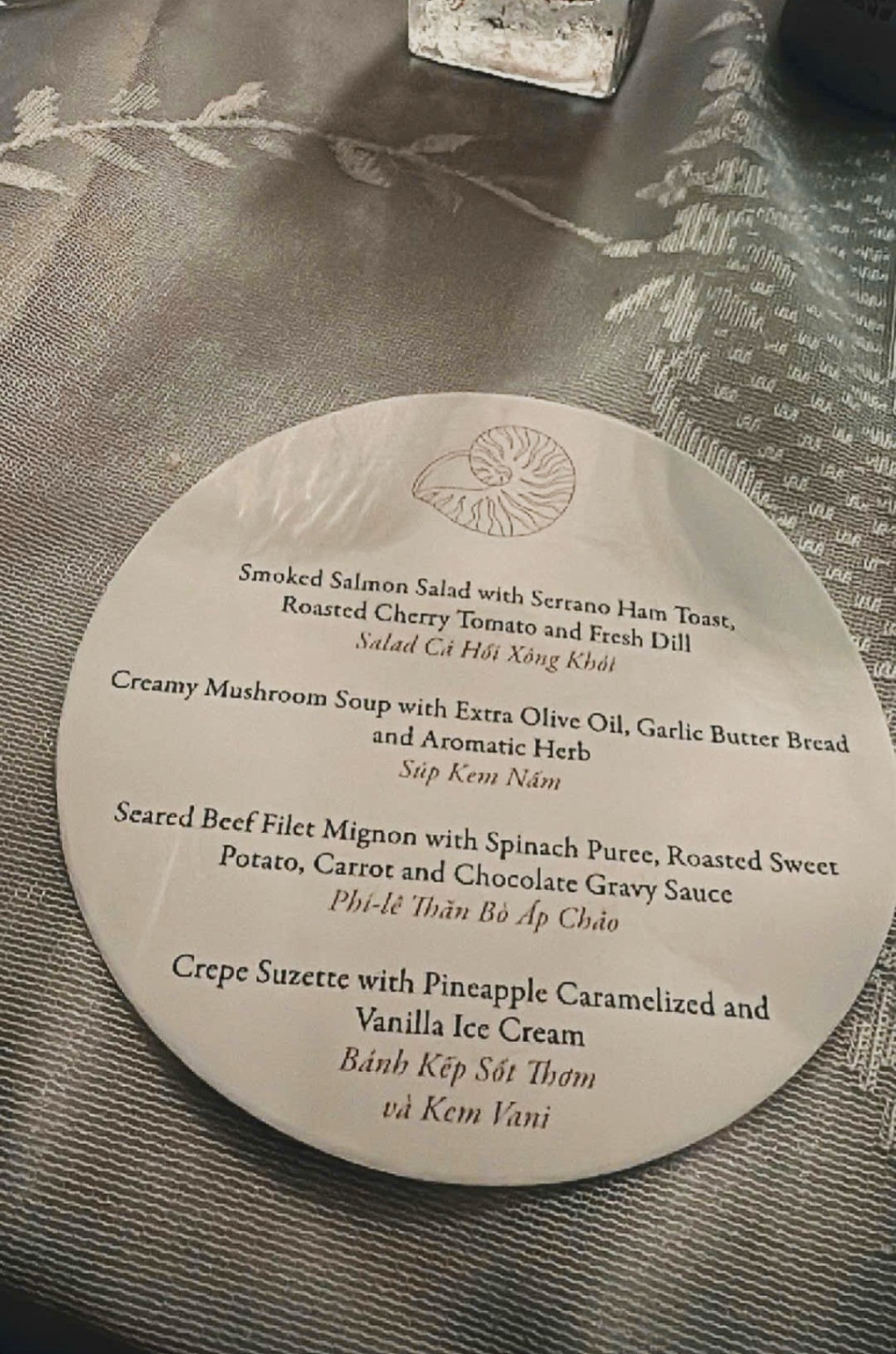 Hôn lễ thân mật chỉ mời bạn bè thân thiết tham gia được vợ chồng Salim và Long Hạt Nhài tổ chức ở một khu nghỉ dưỡng sang trọng tại Nha Trang. Tiệc cưới cũng mang phong cách set menu, các món ăn đều phục vụ theo khẩu phần riêng cho từng khách mời, được trình bày rất cầu kỳ đẹp mắt.