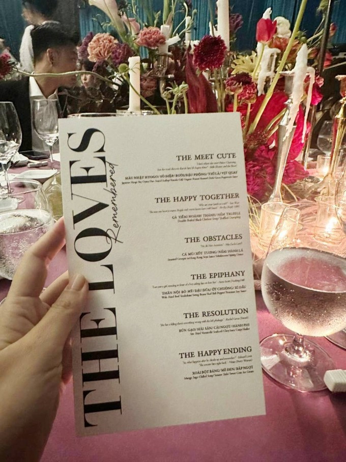 Nhưng tiệc cưới xịn xò nhất của V-Biz chắc hẳn là của Midu khi cô dâu chú rể chọn thực đơn lên tới 9 món như bánh mì mềm nhân bò và nấm truffle, súp nấm tùng nhung tiềm gà, xà lách tôm - xoài, cá tuyết áp chảo xốt kikkoman, tôm hùm xốt đặc biệt, sườn heo nướng xốt, bắp bò hầm tiêu xanh, cơm chiên xá xíu, chè dương chi kim lộ. Chỉ cần nhìn vào tờ thực đơn, khán giả đã nói vui rằng Midu mời khách cả bữa tiệc buffet vì quá nhiều món.