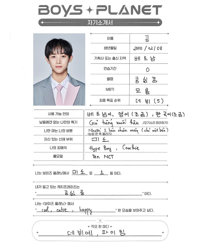 Ngay sau khi Mnet tung ra ảnh profile của 95 thực tập sinh (TTS) tham gia chương trình Boys Planet 999, nhiều người đã lập tức thấy "quen quen" khi lướt tới cái tên CONG - Nguyễn Thành Công. Là một trong hai TTS người Việt dự thi, Thành Công lập tức nhận được sự chú ý lớn từ cộng đồng mạng Việt.