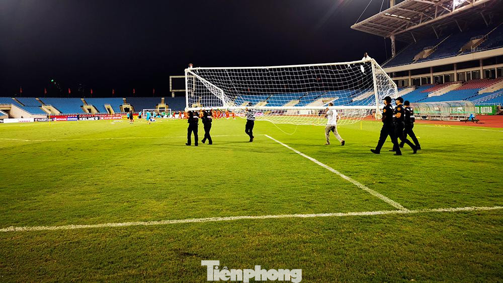 | Hơn nữa, ở khu vực 2 bên cầu môn, mặt cỏ bị cày xới nhiều khiến bề mặt sân trở nên gồ ghề, biến dạng. |