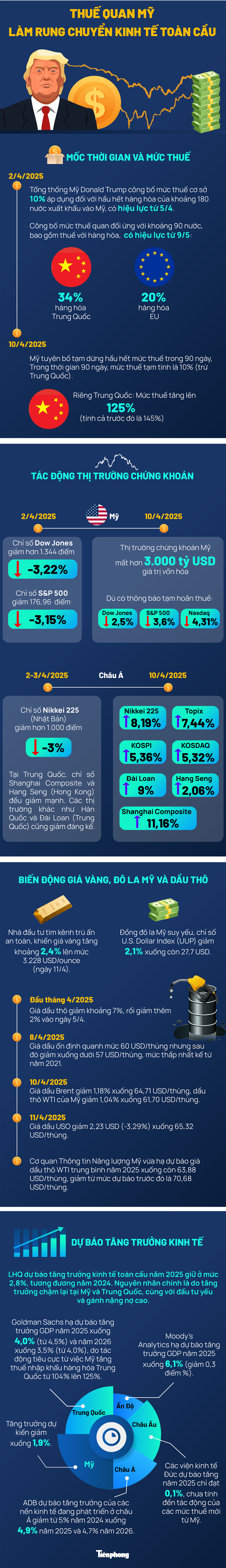 TPO - Chính sách thuế quan của Tổng thống Mỹ Donald Trump làm rung chuyển nền kinh tế toàn cầu, đẩy thị trường tài chính chao đảo...