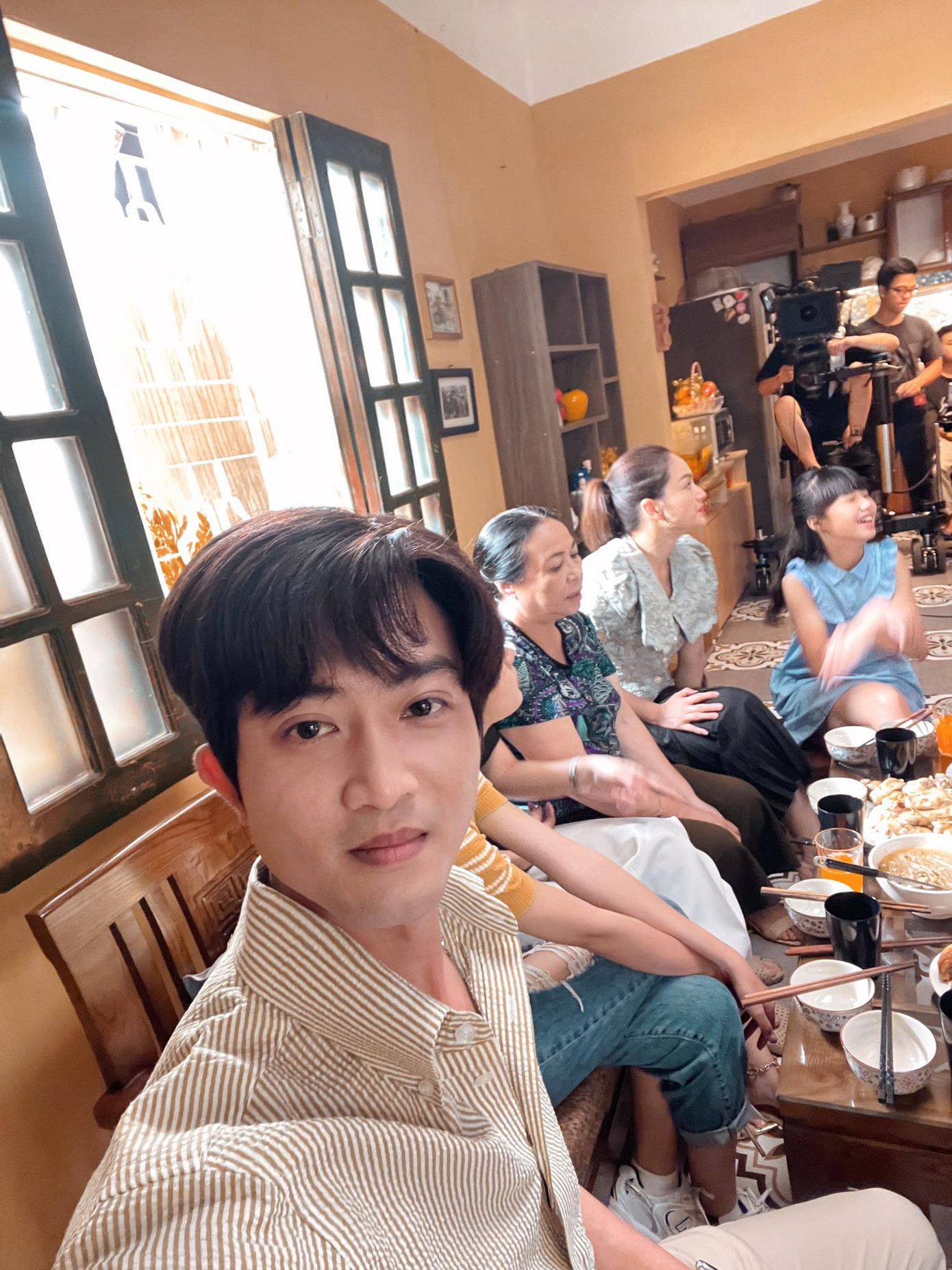 Ở một diễn viên khác, Đông Phong (Doãn Quốc Đam) hào hứng check-in tại nhà mẹ vợ tương lai. Phân đoạn này cũng được diễn viên Đình Tú cũng đã chia sẻ hậu trường, có đủ cả gia đình bà Nga và hai cậu con rể Hoàng Duy, Đông Phong.
