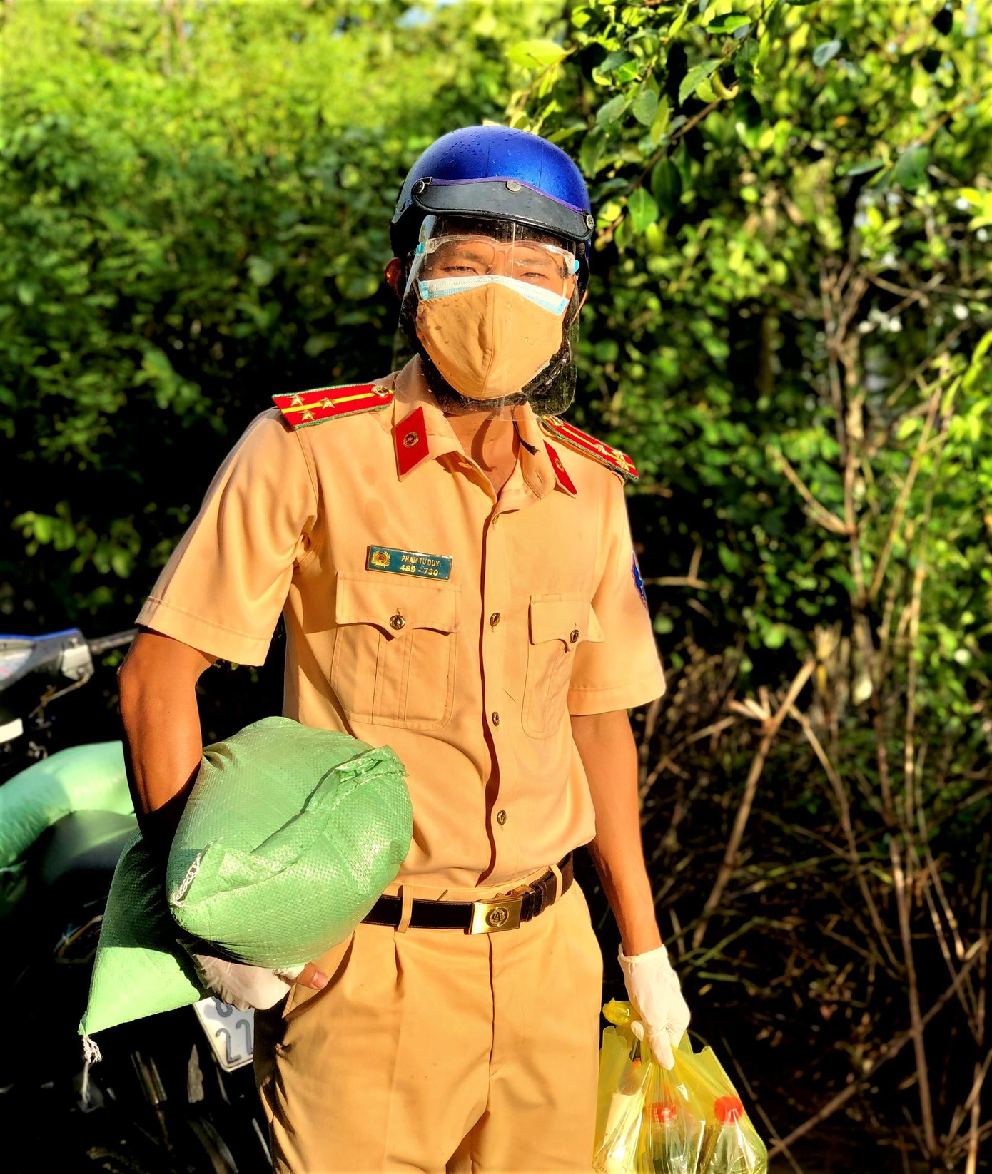 | Thượng úy Duy và hành trình chia sẻ khó khăn với bà con gặp khó khăn do ảnh hưởng dịch COVID-19. |