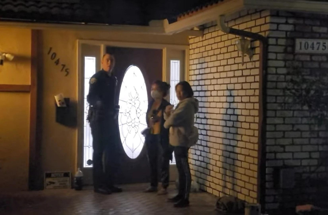 | Hình ảnh Thúy Nga bị cảnh sát Mỹ mời ra khỏi nhà vào lúc nửa đêm. |