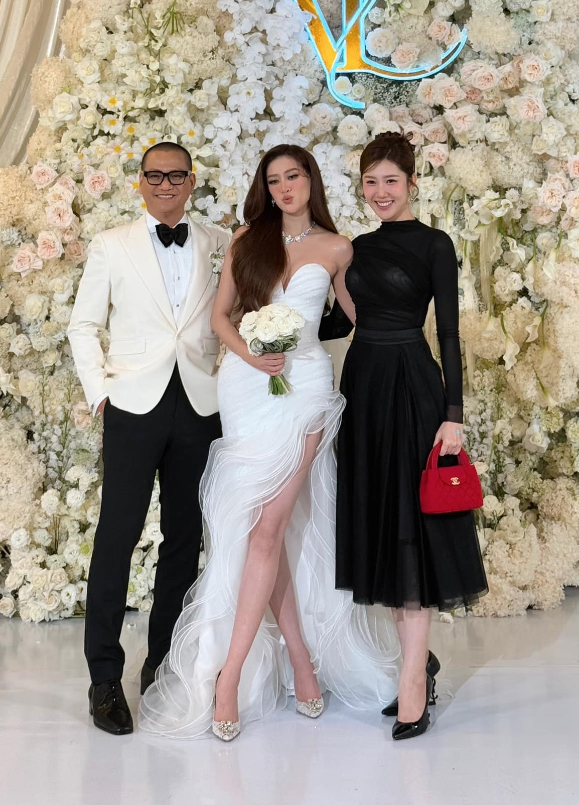 HHTO - Đa số các người đẹp đều mặc đồ đen ở đám cưới Hoa hậu Khánh Vân theo đúng dresscode nhưng chỉ riêng Thúy Ngân mắc lỗi trang phục vì chưa lường trước ánh đèn flash.