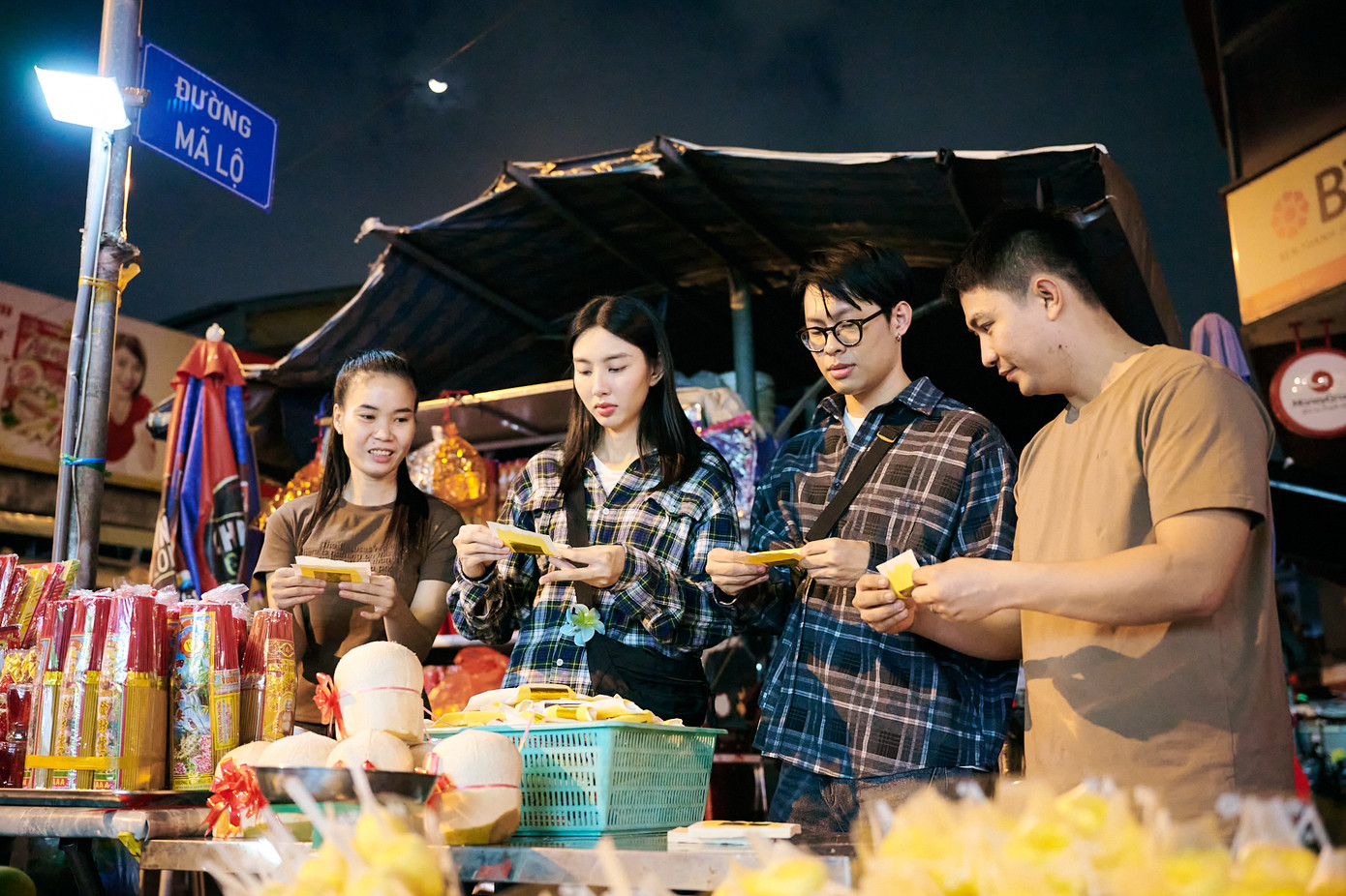 Dưới sự hướng dẫn của anh Hiệp (tiểu thương bán vàng mã tại chợ Tân Định), không hổ là 'con nhà nòi' có mẹ là tiểu thương ở chợ, HURRYKNG rất nhanh nhạy trong việc nhớ giá, tính toán, chăm chỉ quan sát học hỏi và siêu chiều lòng khách.