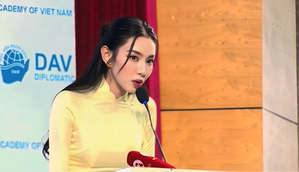 Với khả năng truyền tải mạch lạc, khả năng ngoại ngữ tốt, tại sự kiện quốc tế lần này, Thuỳ Tiên được giao nhiệm vụ phát biểu 100% bằng tiếng Anh. Trong bài nói của mình, nàng hậu chia sẻ về vấn đề thế hệ trẻ đang mất kết nối với những giá trị truyền thống.