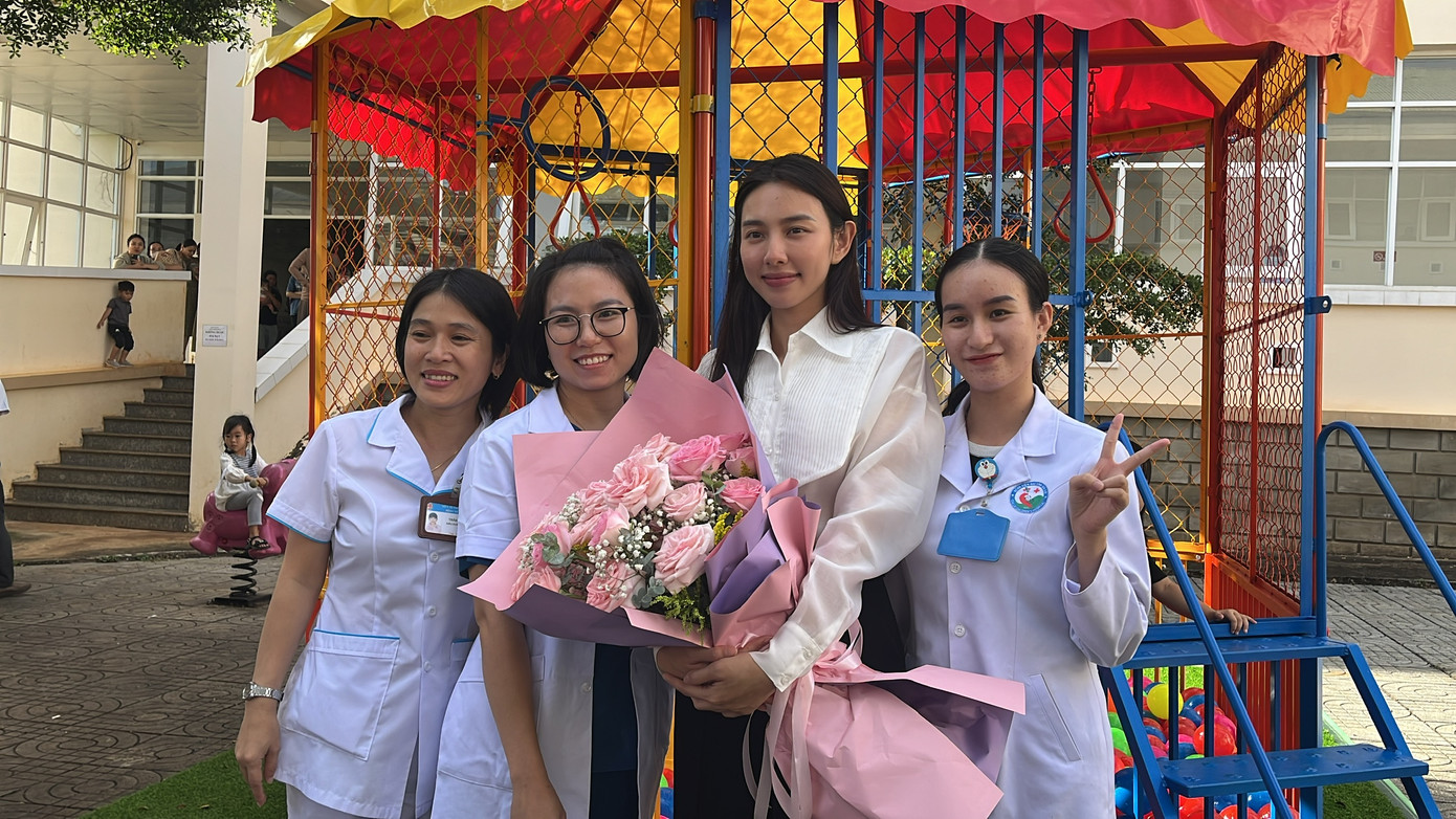 Dự án của người đẹp sinh năm 1998 đã hoàn thành tại 7 bệnh viện, trước đó sân chơi này đã được hoàn tất và nghiệm thu tại Bệnh viện Nhi đồng 1 (TP. HCM), Bệnh viện Sản - Nhi Cà Mau và Bệnh viện chuyên khoa Sản - Nhi tỉnh Sóc Trăng.
