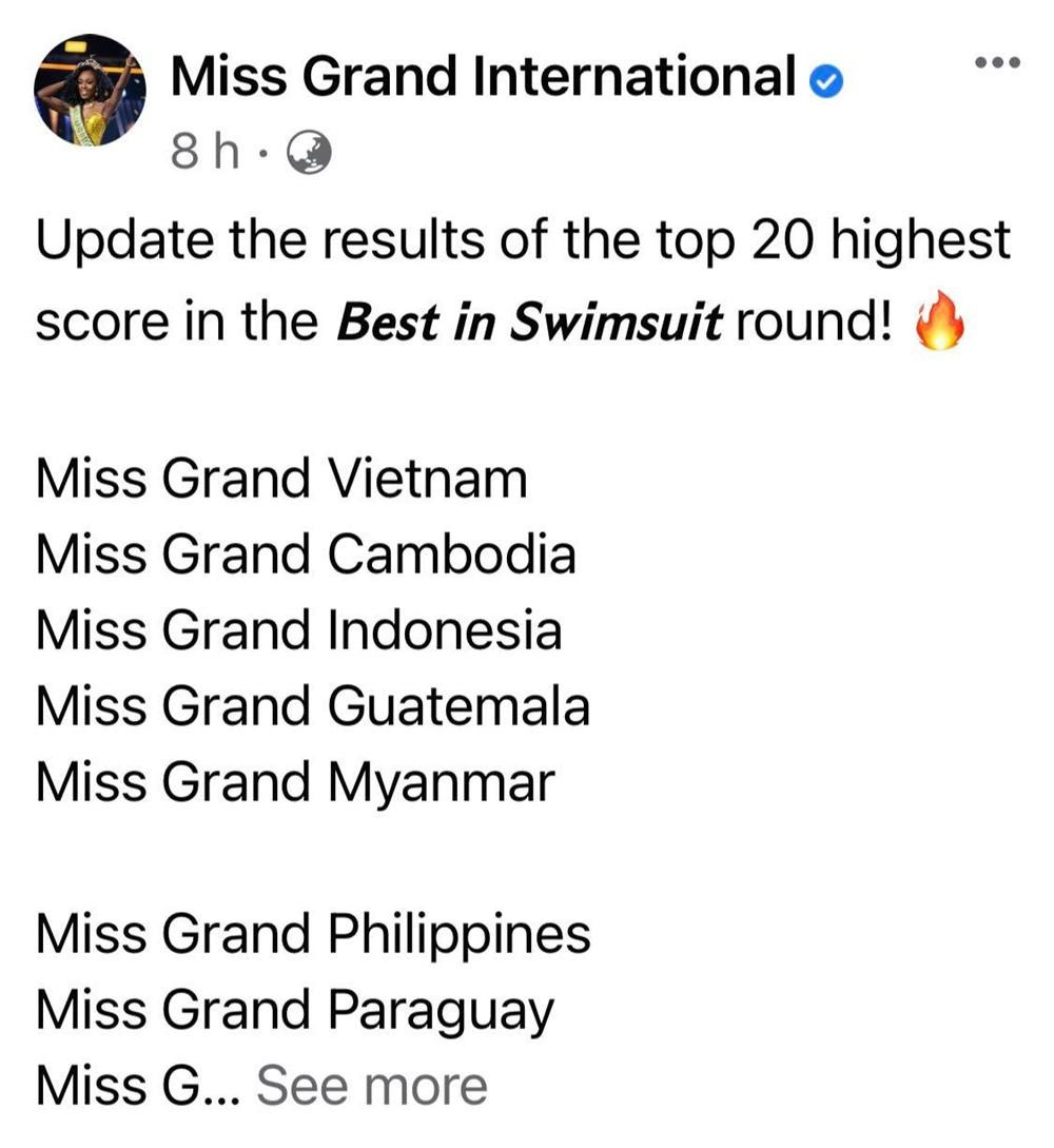 Chuyên trang sắc đẹp Sash Factor cũng đã đưa ra lựa chọn riêng của mình sau phần thi áo tắm này. Theo đó, người đẹp Thùy Tiên được xếp ở vị trí thứ 12 trong Top 20.