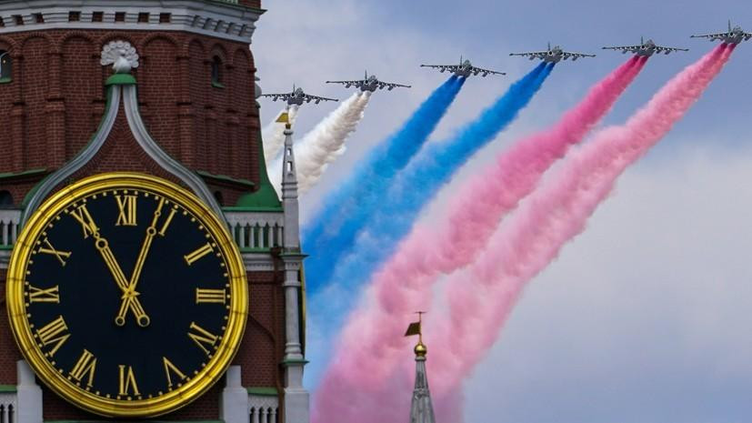 53 máy bay và 23 trực thăng của Bộ Quốc phòng Nga cất cánh từ 8 sân bay khác nhau tham gia vào cuộc diễu binh