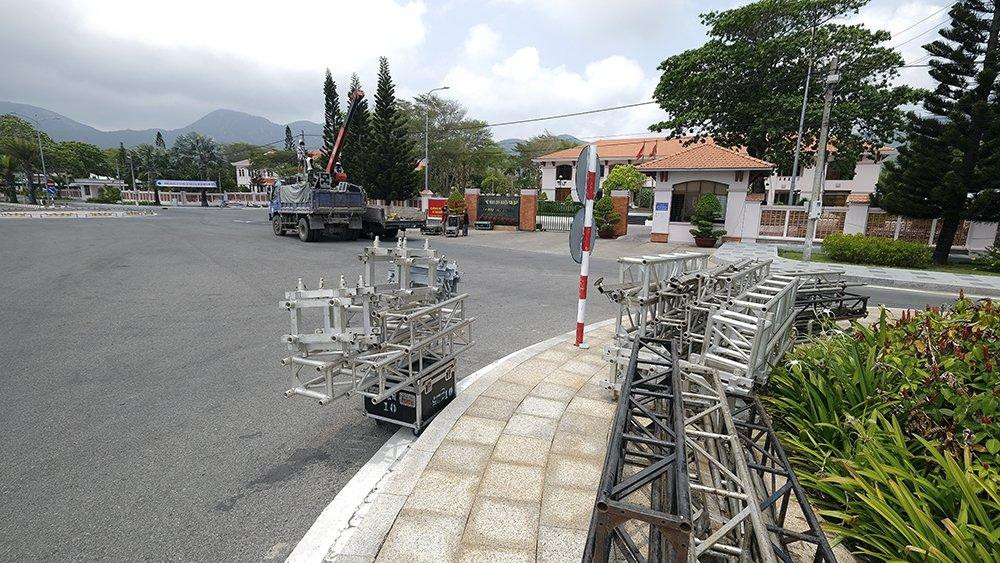 | Ban tổ chức gấp rút tiến hành các hạng mục thi công, lắp đặt lều bạt của các khu chức năng. |