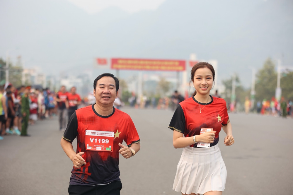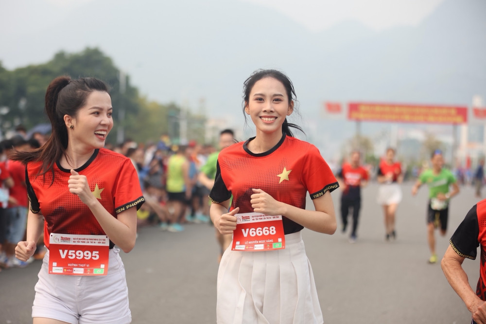 Dàn Hoa - Á hậu năng động, rạng rỡ trên đường chạy của giải Vô địch Quốc gia Marathon và cự ly dài báo Tiền Phong lần thứ 64 - năm 2023 (Tiền Phong Marathon 2023) diễn ra ở Quảng trường Nhân dân (thành phố Lai Châu, tỉnh Lai Châu) ngày 26/3.