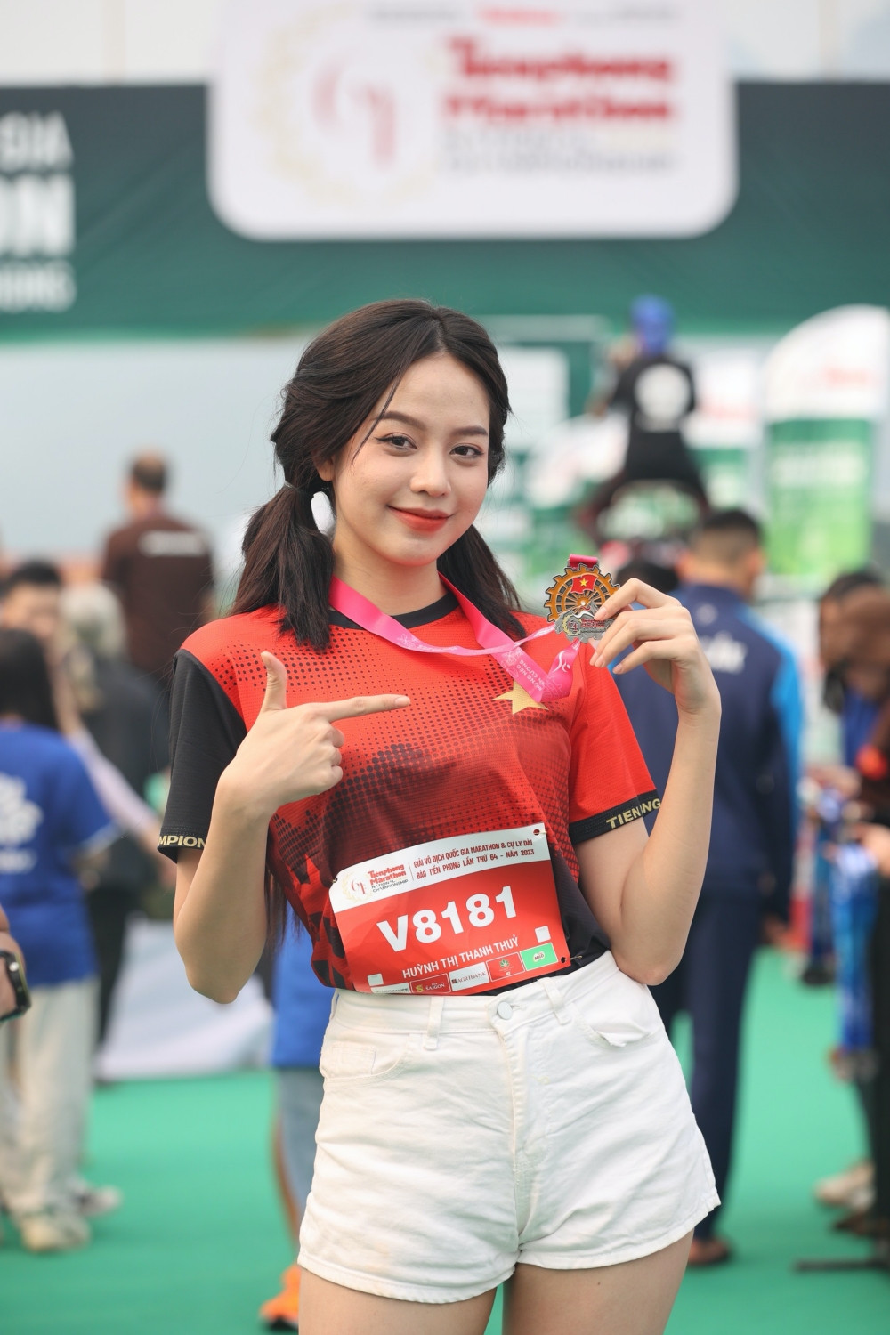 Hoa hậu Thanh Thủy xinh tươi trẻ trung sau khi hoàn thành đường chạy.