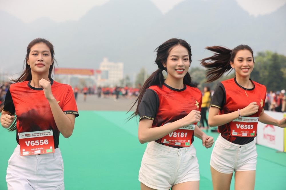 Hoa hậu Thiên Ân, Thanh Thủy, Tiểu Vy đồng hành cùng nhau trên đường chạy.
