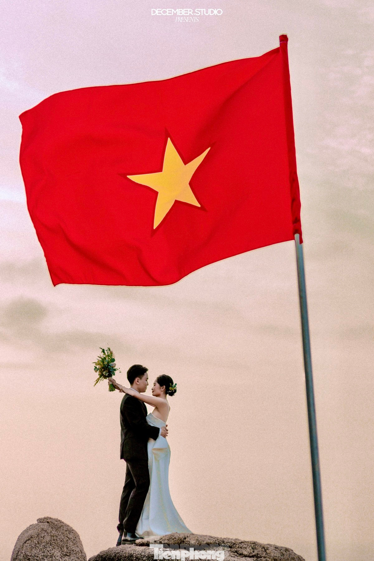 Yêu Tổ quốc và mong muốn có được bộ ảnh cưới cùng lá quốc kỳ, đôi bạn trẻ Quốc Anh - Quỳnh Anh vô cùng hạnh phúc khi giấc mơ thành hiện thực cùng với Tiền Phong Marathon 2024.