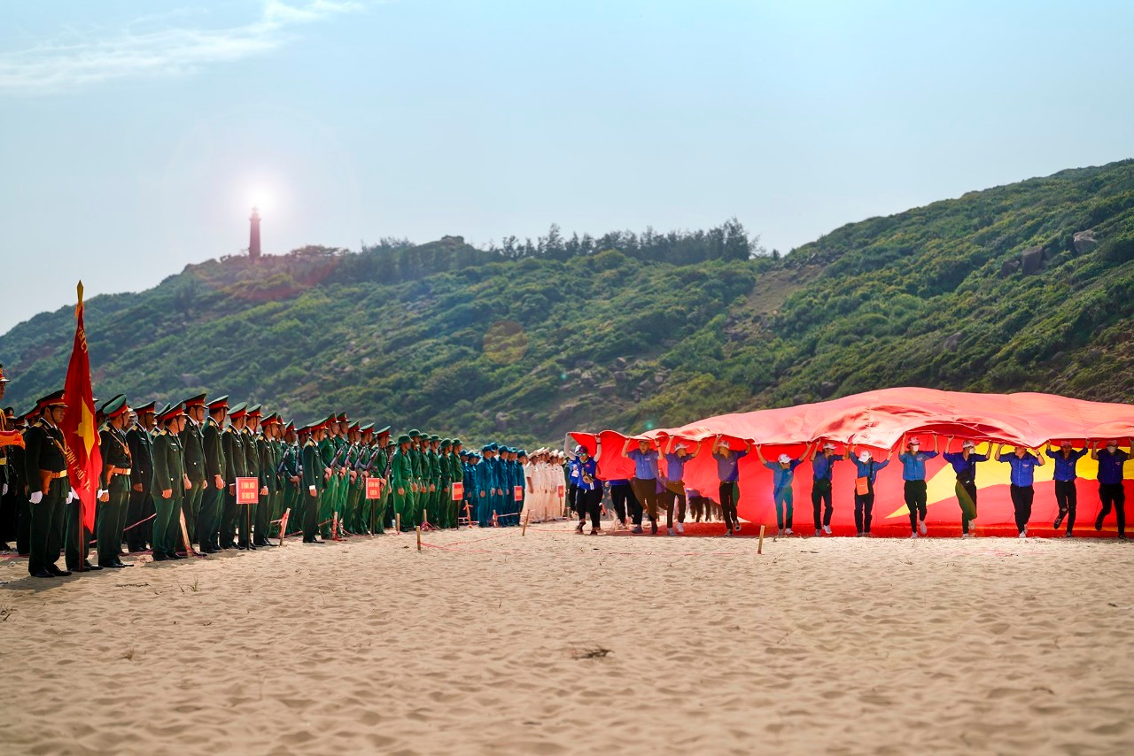 Tại lòng Bãi Môn - Mũi Điện mang dáng hình Tổ quốc, có một dáng hình Việt Nam thu nhỏ hơn nữa được xếp bởi 3.200 đoàn viên, thanh niên tỉnh Phú Yên với sắc áo cờ đỏ sao vàng. Các bạn đã phác họa nên hình ảnh hoàn hảo “Tổ quốc trong lòng Tổ quốc”.
