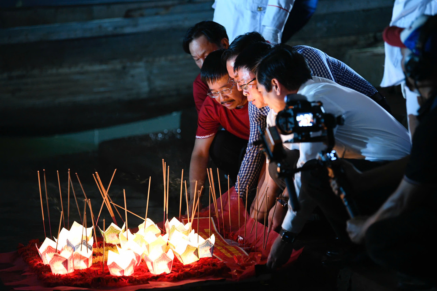 Trên dòng sông một thời hoà cùng máu đào của hàng ngàn cán bộ, chiến sỹ, đồng bào cả nước, Phó Chủ tịch UBND tỉnh Quảng Trị Hoàng Nam và nhà báo Phùng Công Sưởng, cùng Ban tổ chức, các vận động viên, các thí sinh tham dự Hoa hậu Việt Nam năm 2024 đã kính cẩn thắp những nén tâm hương, thả nhẹ những bông hoa tươi thắm, những chiếc đèn hoa đăng để tưởng nhớ các Anh hùng liệt sĩ đã hy sinh tuổi thanh xuân của mình cho Tổ quốc.