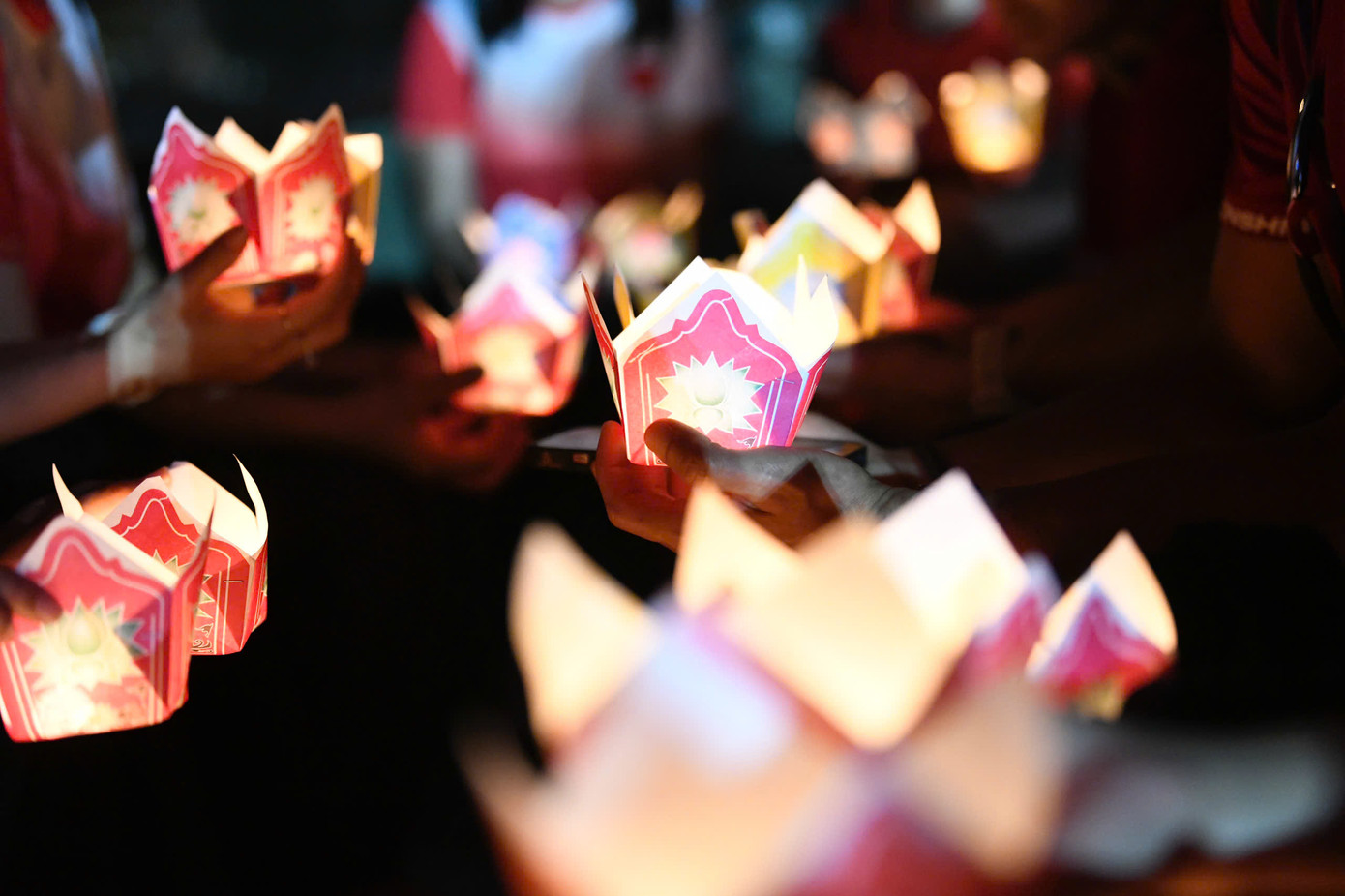 | Những đóa hoa tươi cùng hoa đăng đã được thả xuống dòng sông hoa đỏ, tưởng nhớ các Anh hùng liệt sĩ đã hy sinh tuổi thanh xuân của mình cho Tổ quốc. |