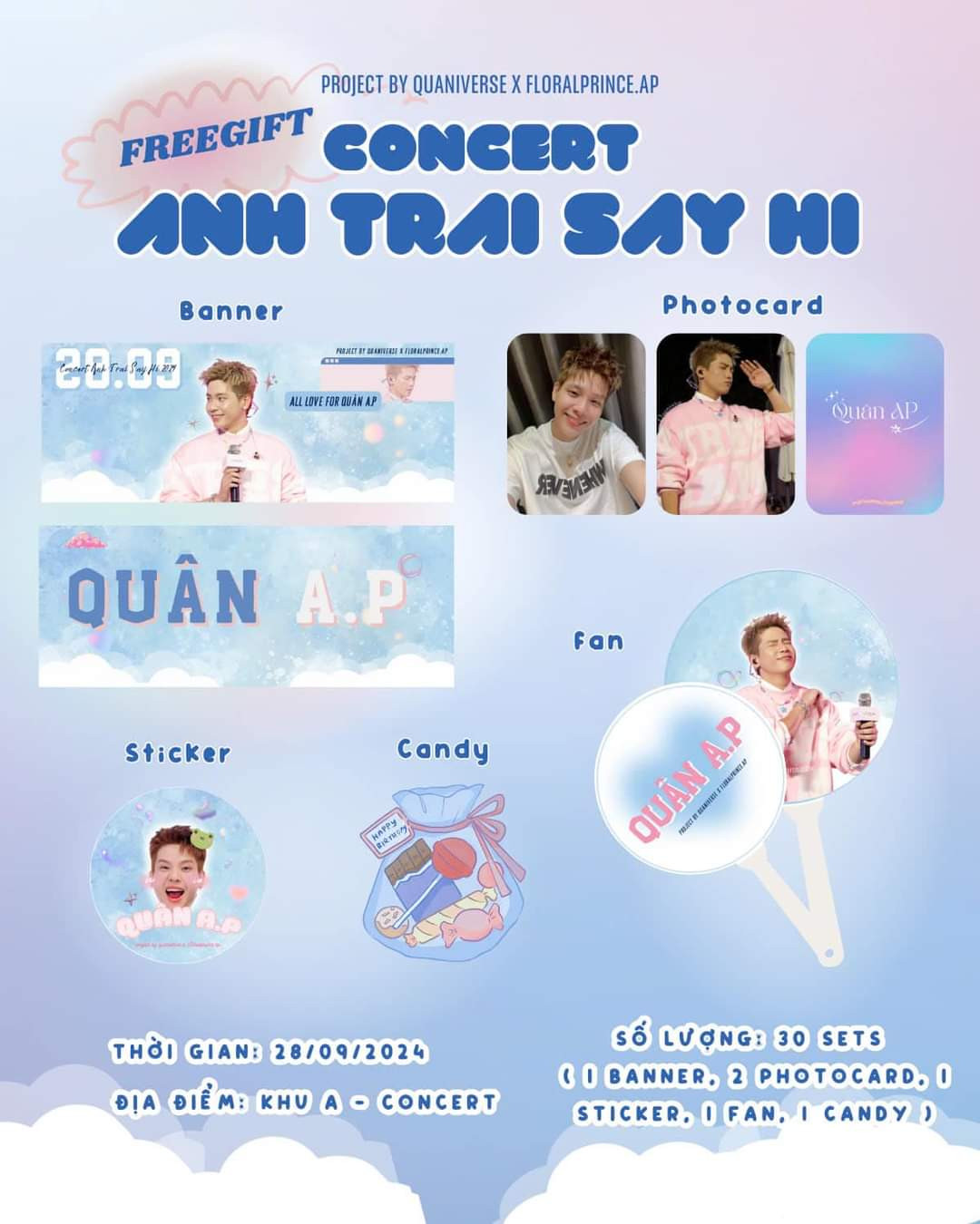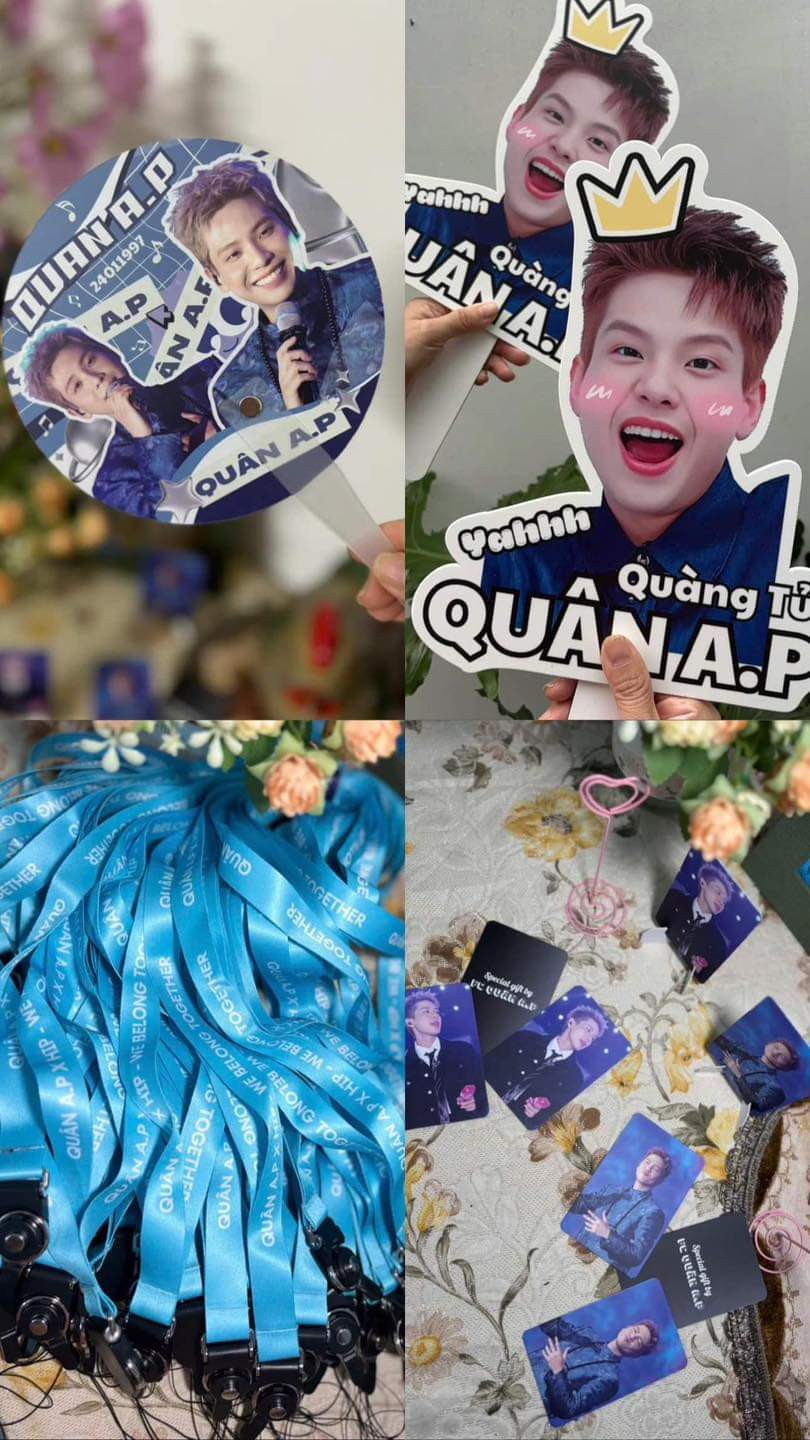 | Fan của Quân A.P cũng tung ra nhiều set freegift gồm photo card, quạt tay, sticker, banner... để cùng fanchant. Ảnh: FC Quân A.P |