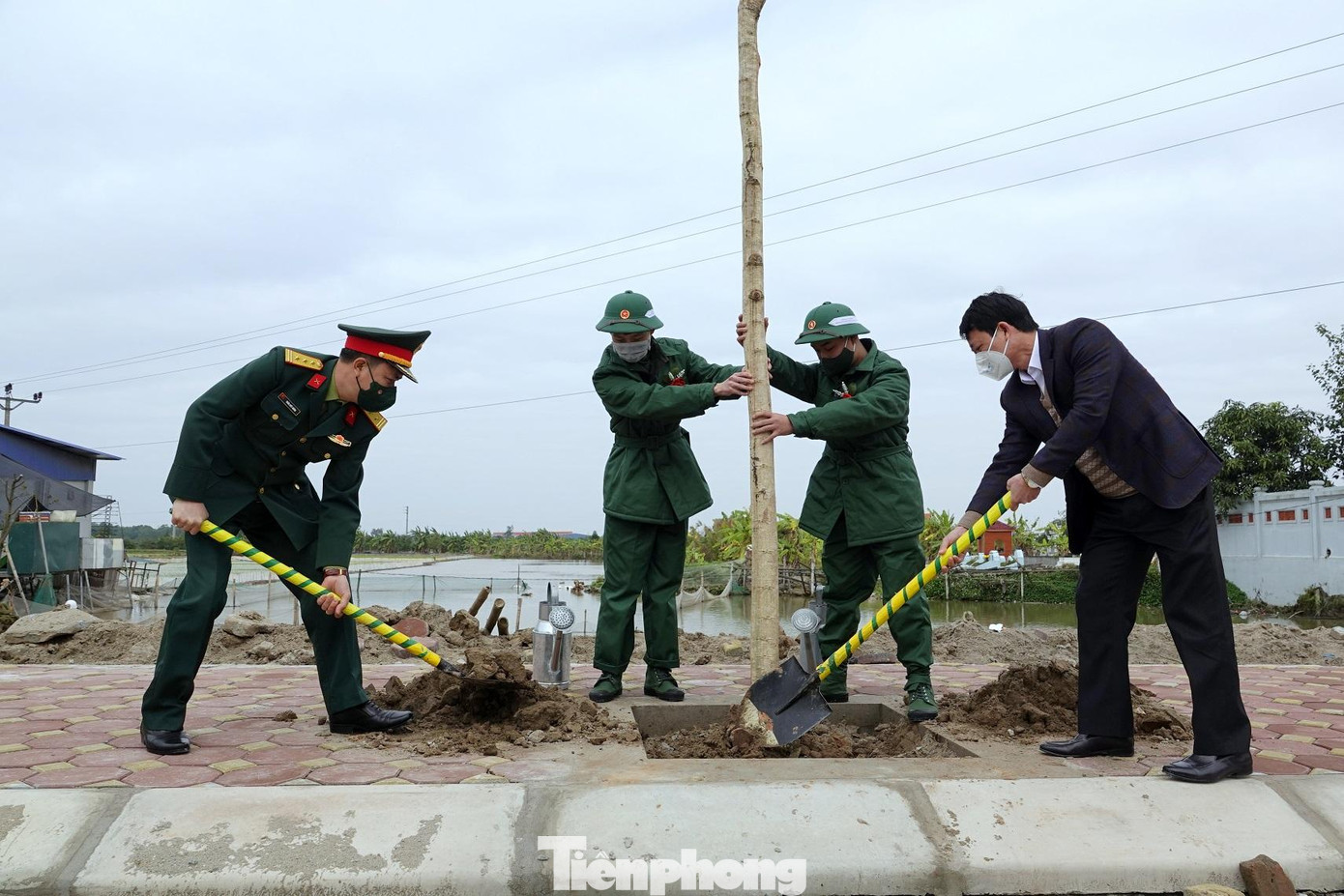 | Lãnh đạo, đại biểu các cơ quan, đơn vị và thanh niên lên đường nhập ngũ năm 2022 cùng trồng hàng cây quân dân, sáng 14/2 |