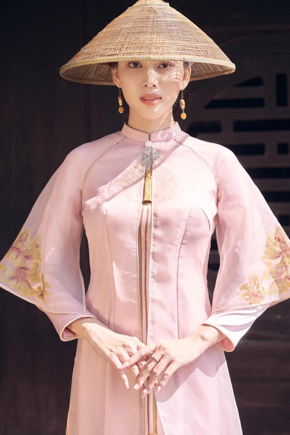 Những chiếc áo dài nằm trong BST Vân Kỳ Hoạ của NTK Trần Thiện Khánh, được thêu các họa tiết lấy cảm hứng từ cung đình Huế, kết hợp cùng những chiếc mấn cách điệu.