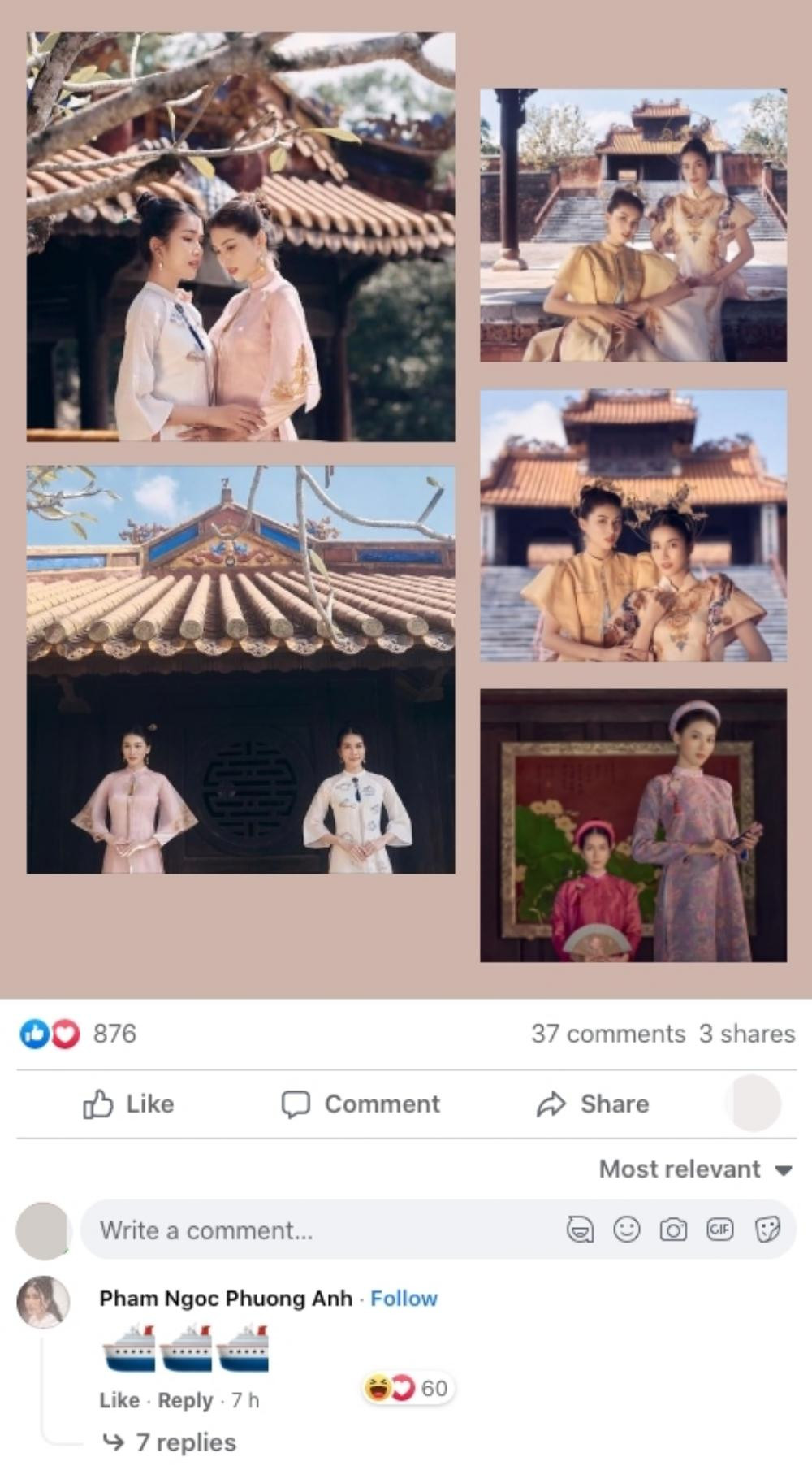Hai nàng hậu khiến netizen vô cùng thích thú và hùa nhau “đẩy thuyền”. Đáng chú ý là chính Á hậu Phương Anh cũng thả bình luận hình những con tàu (ship) trong post, khiến cho người hâm mộ thích thú.