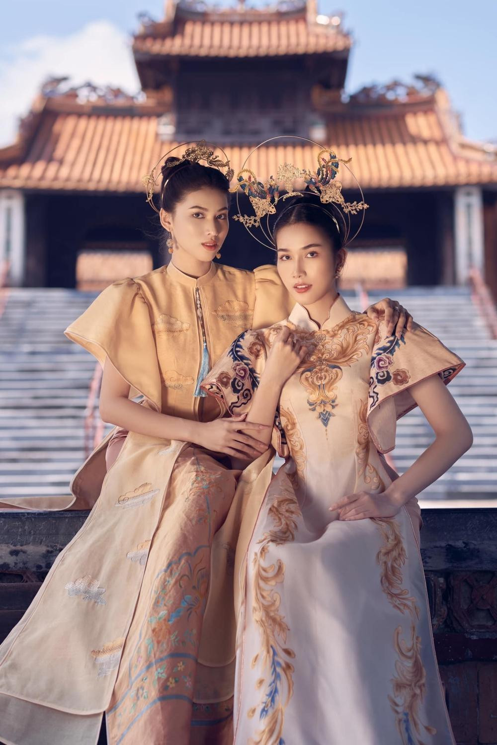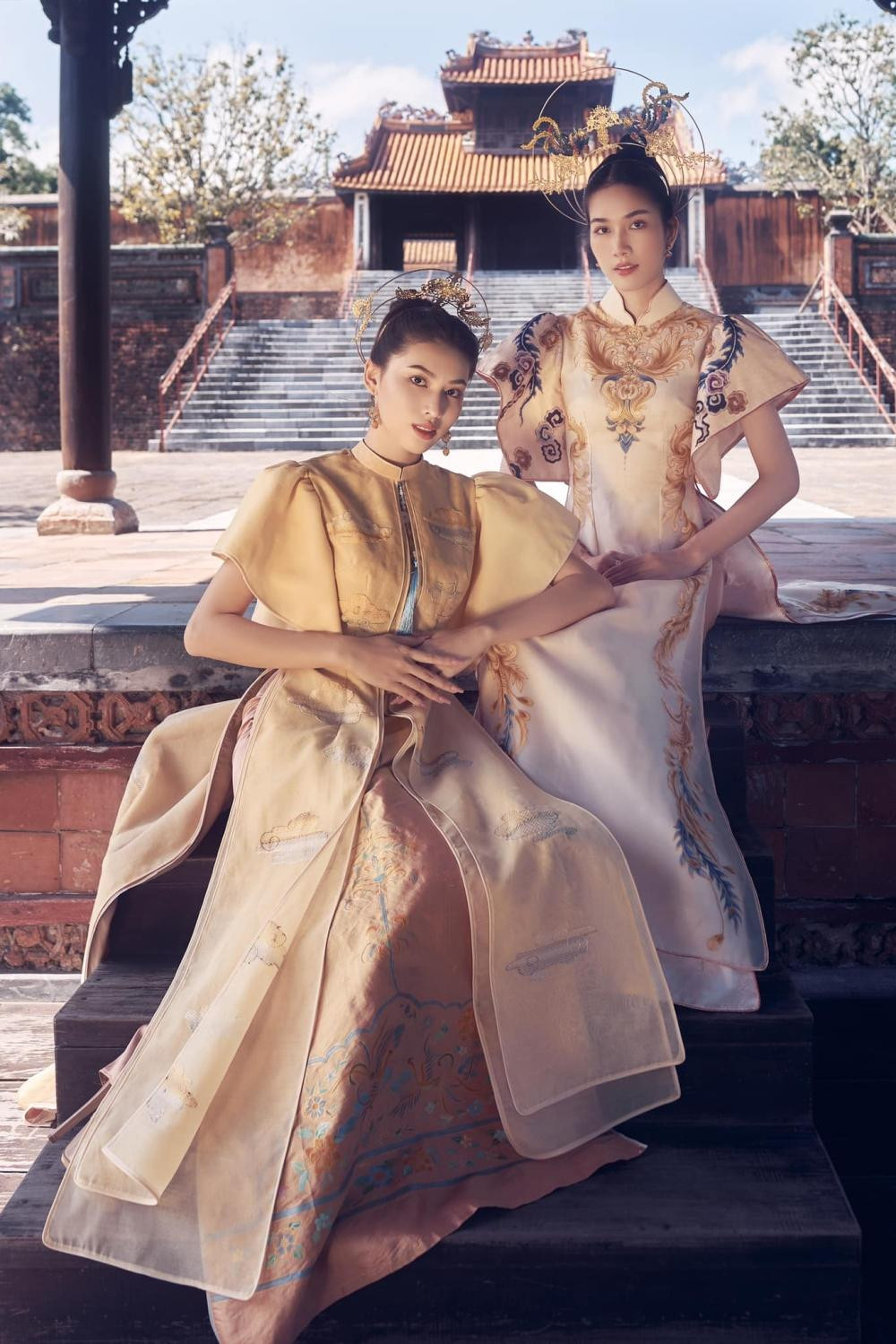 Hai người đẹp khoe nhan sắc nổi bật giữa các kiến trúc đền đài lăng tẩm Huế.