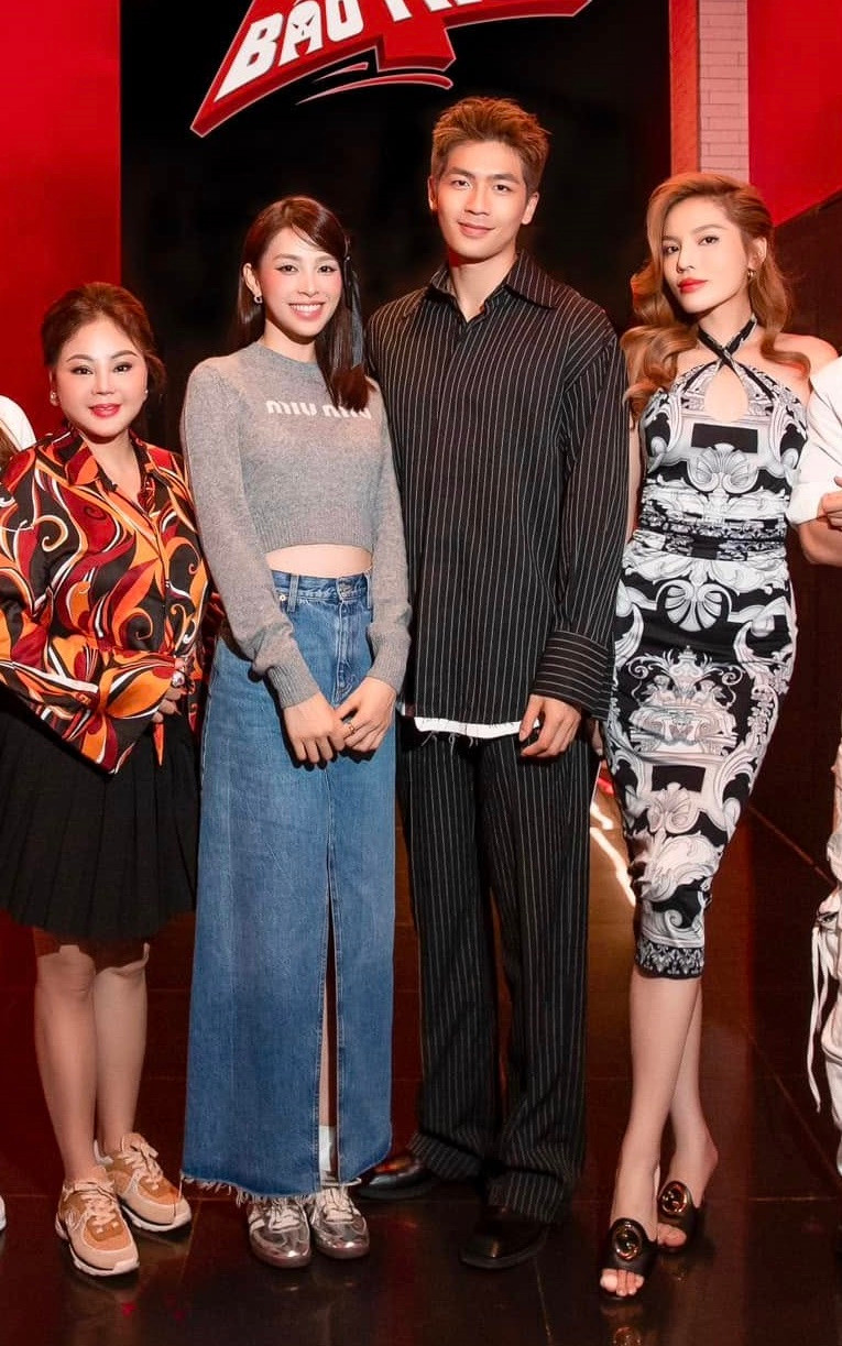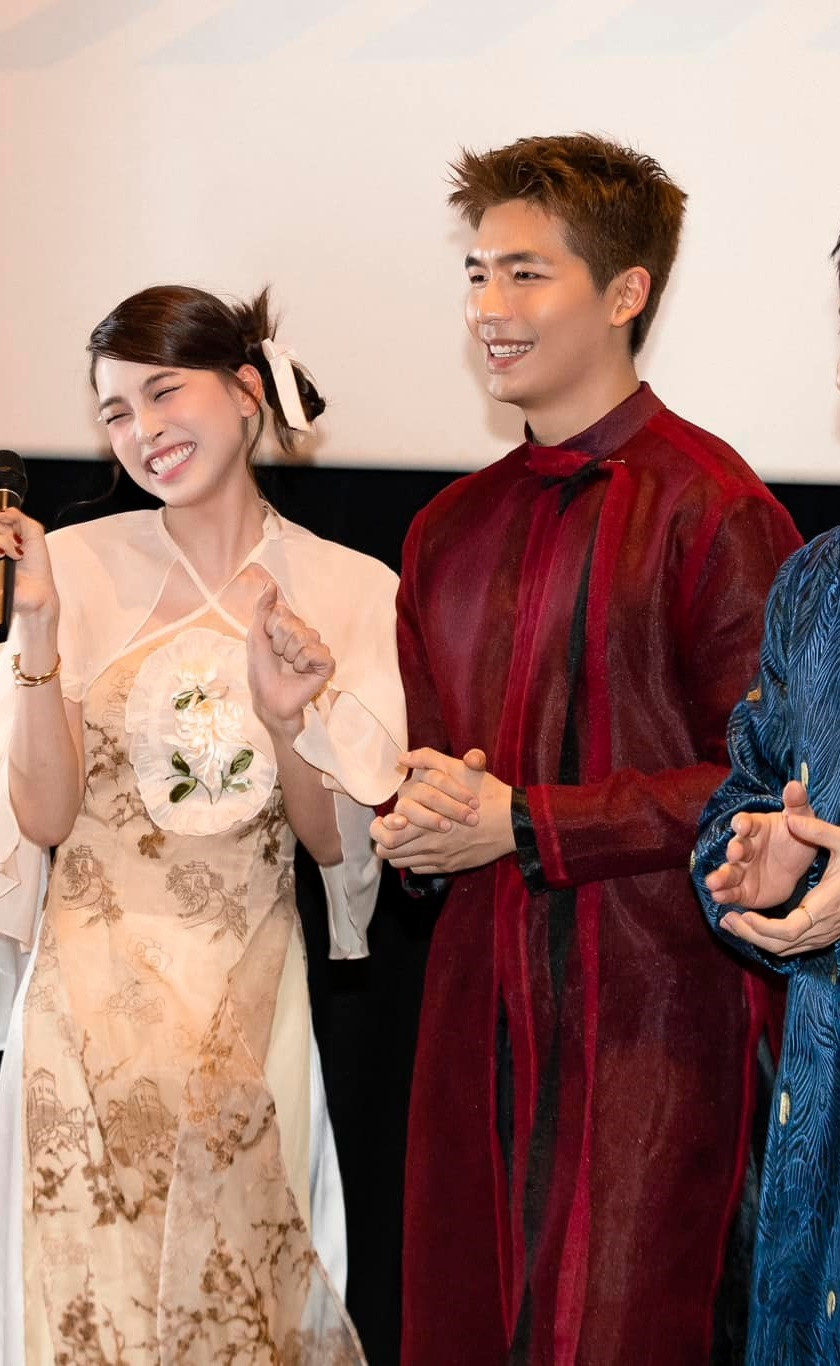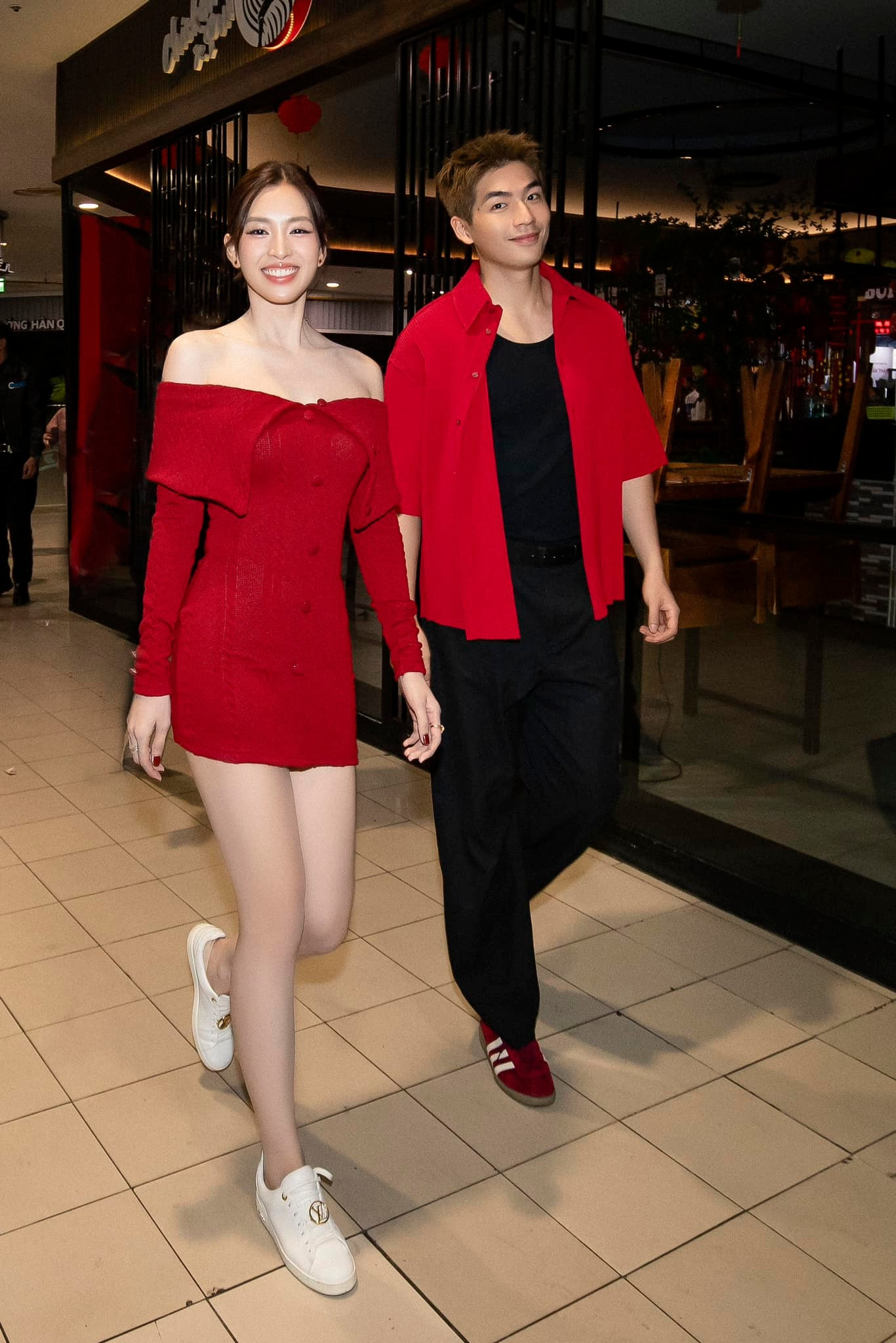 Không chỉ tương tác trên mạng xã hội, Tiểu Vy và Quốc Anh còn nhiều lần xuất hiện với trang phục có màu sắc đồng điệu trong các sự kiện quảng bá phim. Trong một lần ra mắt, Tiểu Vy diện set đồ đỏ nổi bật, còn Quốc Anh cũng chọn trang phục mang tông màu hài hòa, tạo sự ăn ý khi đứng cạnh nhau.