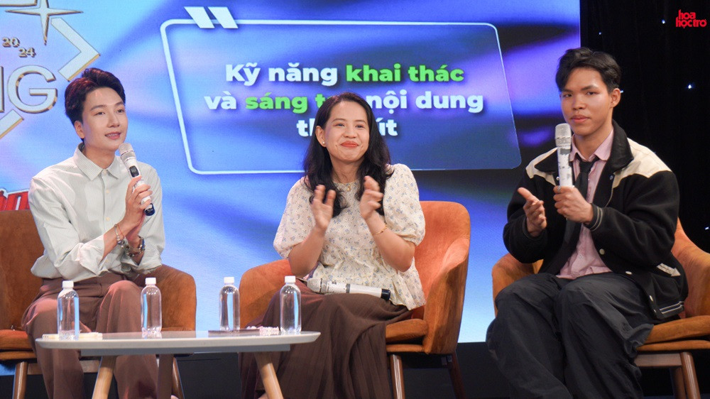 | Dàn diễn giả “siêu xịn” giao lưu cùng host Nho Khoa. |