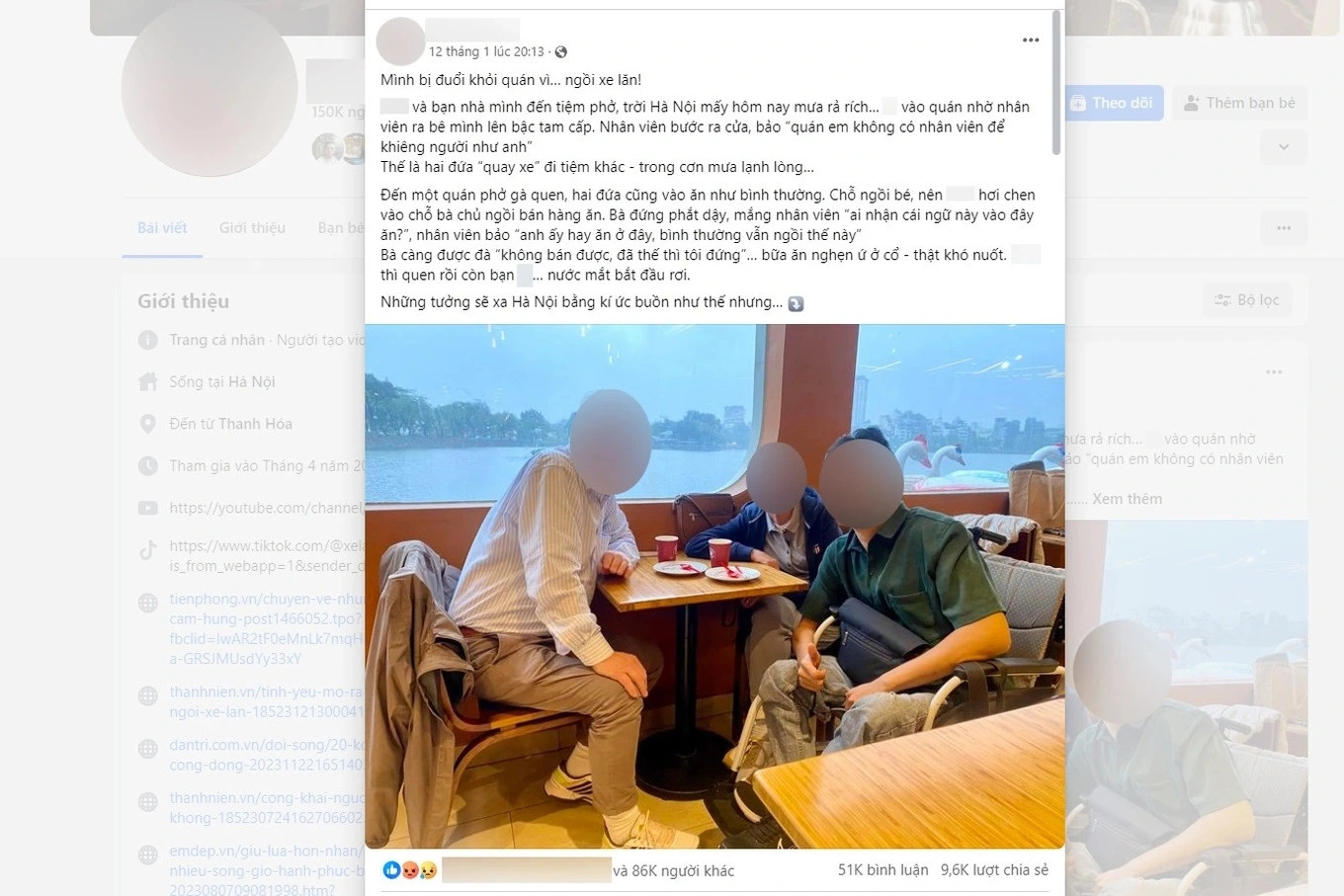 Hồi tháng 1, trong video đăng tải trên mạng xã hội, V.M.L. cho biết khi đến ăn quán phở quen, chỗ ngồi hạn chế, xe lăn của anh hơi vướng vào chỗ ngồi bán hàng của chủ quán.