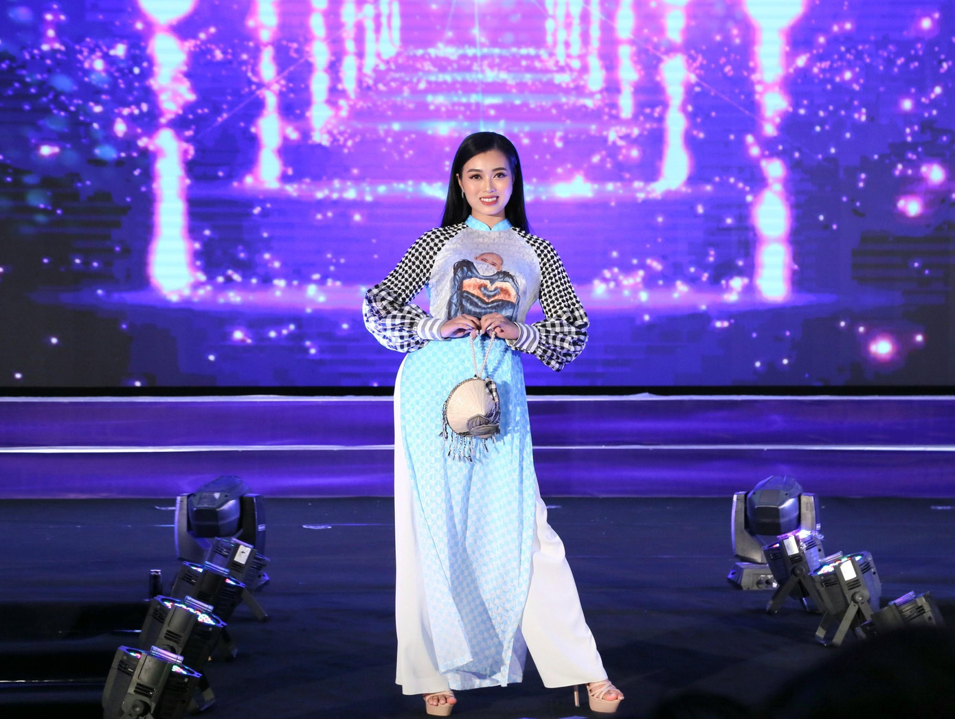 | Thí sinh trình diễn trang phục áo Đoàn. - Ảnh: Minh Trung |