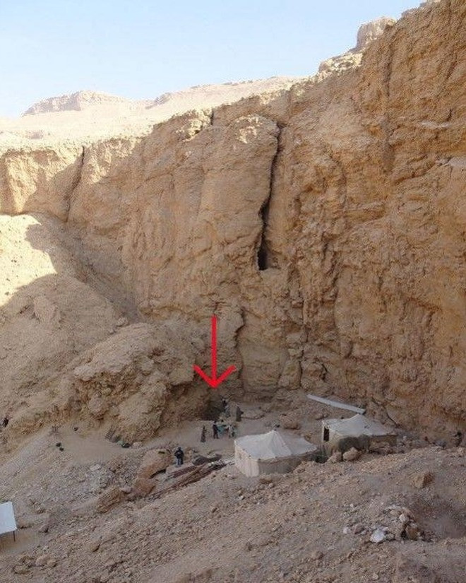 | Lối vào lăng mộ Thutmose II được tìm thấy dưới chân một vách đá - Ảnh: BẢO TÀNG AI CẬP |