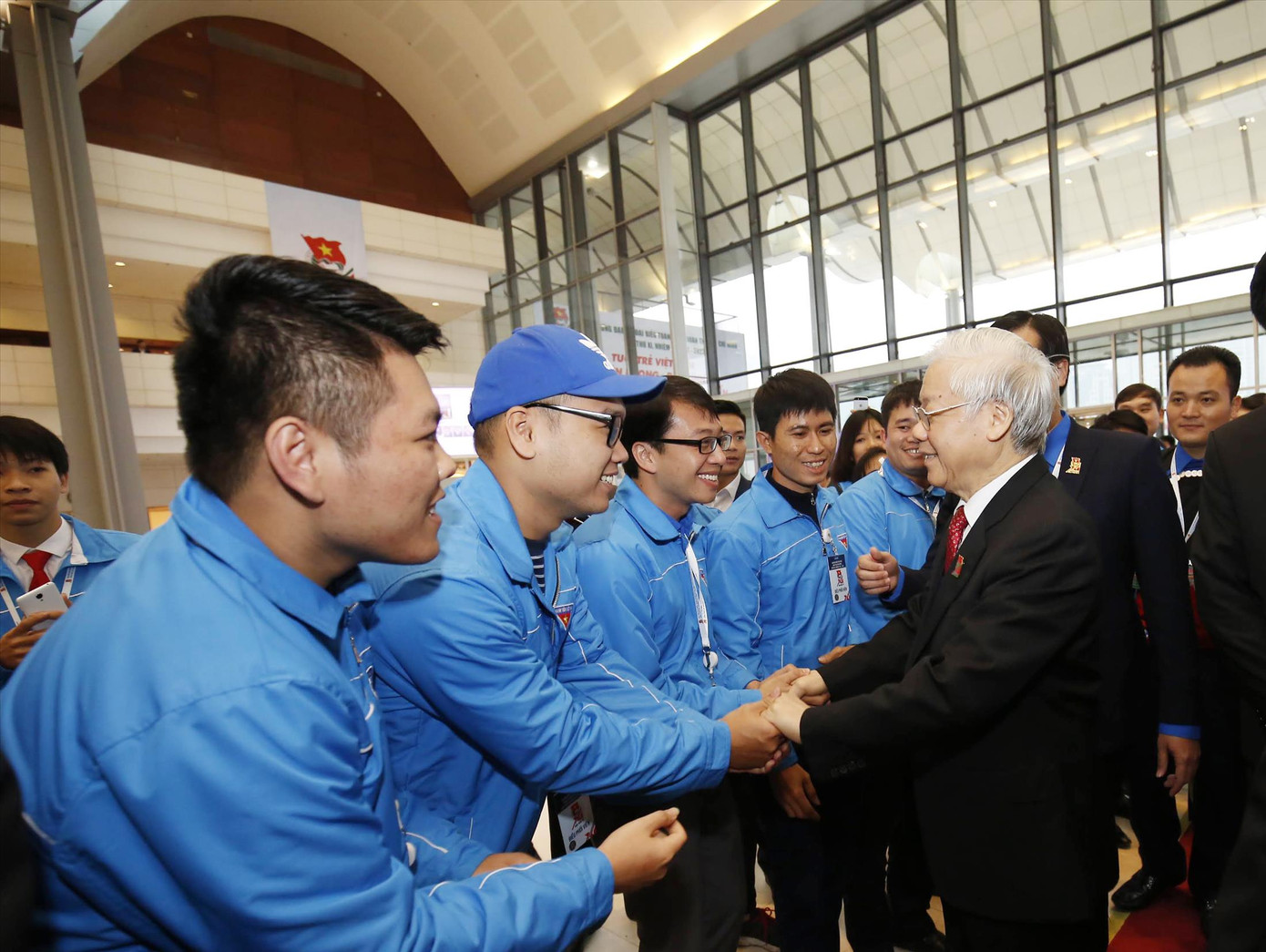 “Qua nghiên cứu Báo cáo chính trị của các đồng chí, cùng với việc được nghe các ý kiến phát biểu thảo luận tại Đại hội, tôi thấy Đoàn TNCS Hồ Chí Minh đã có nhiều cố gắng để đổi mới nội dung, phương thức hoạt động, đặc biệt là trong việc giáo dục lý tưởng cách mạng, bồi dưỡng đạo đức, lối sống lành mạnh cho thế hệ trẻ. Qua đó, tính tích cực chính trị, niềm tin của thanh niên đối với Đảng, với tổ chức Đoàn, với công cuộc đổi mới dưới sự lãnh đạo của Đảng đang được củng cố”, Tổng Bí thư phát biểu tại Đại hội Đoàn toàn quốc lần thứ XII.
