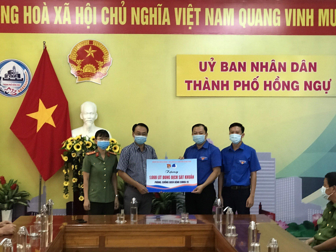 Dịp này, thay mặt Ban Thường vụ Tỉnh đoàn, anh Huỳnh Minh trao tặng 5.000 lít dung dịch sát khuẩn do Tỉnh đoàn vận động Trung tâm Phát triển khoa học-công nghệ trẻ TP.HCM tài trợ cho Bộ đội Biên phòng tỉnh Đồng Tháp, Đồn Biên phòng thuộc huyện Biên giới Hồng Ngự, TP Hồng Ngự, Tân Hồng.