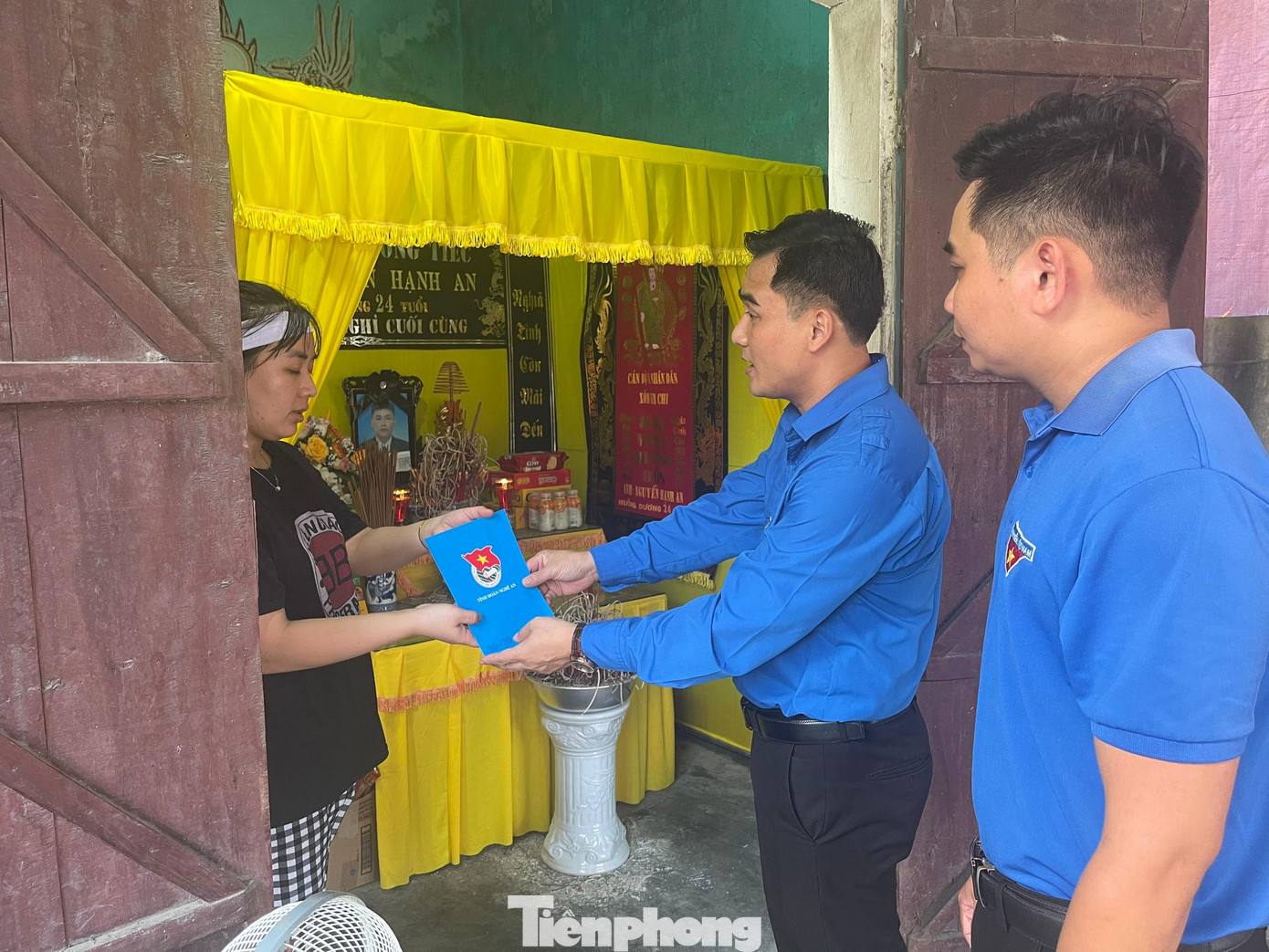 | Cùng ngày, thừa uỷ quyền của Trung ương Đoàn, anh Thái Minh Sỹ - Phó Bí thư Tỉnh Đoàn Nghệ An đã đến thăm hỏi, động viên và hỗ trợ 9 gia đình tại thành phố Vinh, Nghi Lộc, Thanh Chương, Quỳnh Lưu, Diễn Châu có người thân tử vong trong đợt mưa lũ do ảnh hưởng bởi bão số 4, mỗi gia đình 3 triệu đồng. |