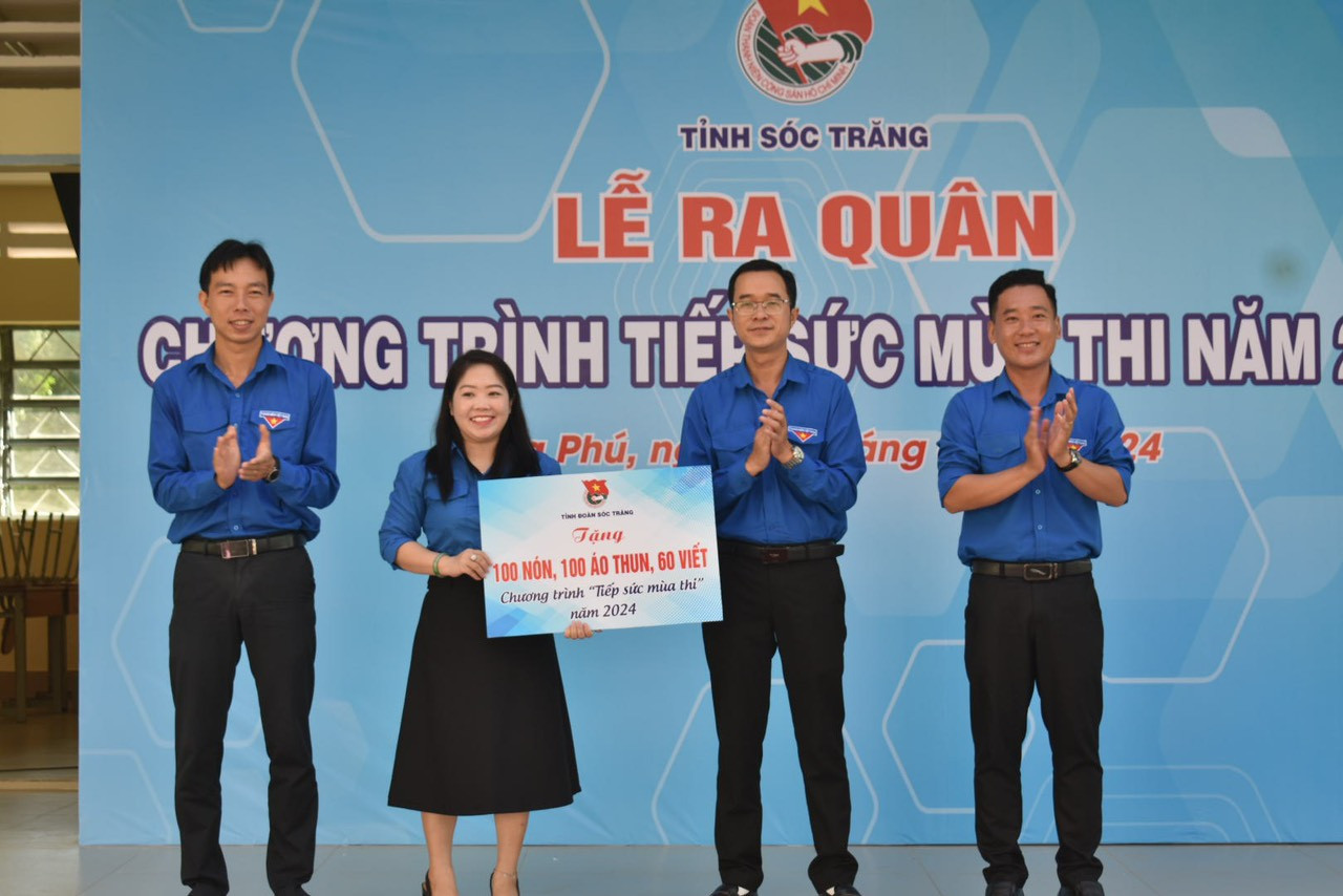 Trong dịp này, Tỉnh đoàn phối hợp cùng các đơn vị đồng hành trao tặng 20 suất học bổng cho các em học sinh khó khăn; trao tặng 100 nón, 100 áo thun và 60 viết bi cho Huyện đoàn Long Phú, Cù Lao Dung, Trần Đề; hỗ trợ 13 triệu đồng, 430 nón cho Tỉnh đoàn và trao tặng bảng tượng trưng 200 suất ăn miễn phí cho Huyện đoàn Long Phú, Cù Lao Dung, Trần Đề; trao tặng 11 chiếc xe đạp cho các em học sinh có hoàn cảnh khó khăn; trao tặng bảng tượng trưng 50 áo mưa cho Huyện đoàn Long Phú; tặng 1 triệu đồng cho Huyện đoàn Long Phú để tổ chức các hoạt động tiếp sức mùa thi.