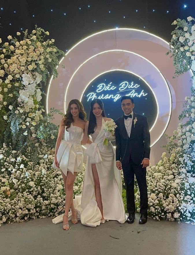 Dù đang hết sức bận rộn với lịch trình sau khi đăng quang Miss Grand Vietnam 2023, Hoa hậu Lê Hoàng Phương vẫn tranh thủ có mặt trong ngày vui của Phương Anh và Đức Hồ. Trong khi đó, Á hậu Ngọc Hằng cũng xuất hiện trong lễ cưới của đàn chị trước khi lên đường chinh chiến quốc tế.