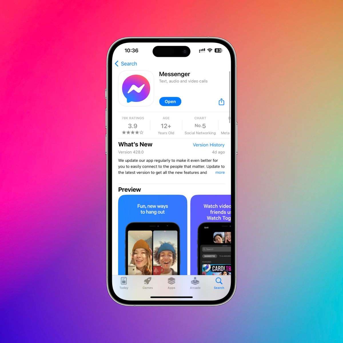 Bước 1: Đầu tiên và quan trọng nhất, bạn cần đảm bảo rằng ứng dụng Messenger trên điện thoại của mình đã được cập nhật lên phiên bản mới nhất. Nếu chưa, bạn có thể cập nhật nó thông qua cửa hàng ứng dụng trên điện thoại của mình hoặc nhấp vào các liên kết dưới đây để truy cập trang cập nhật tương ứng với hệ điều hành của thiết bị: