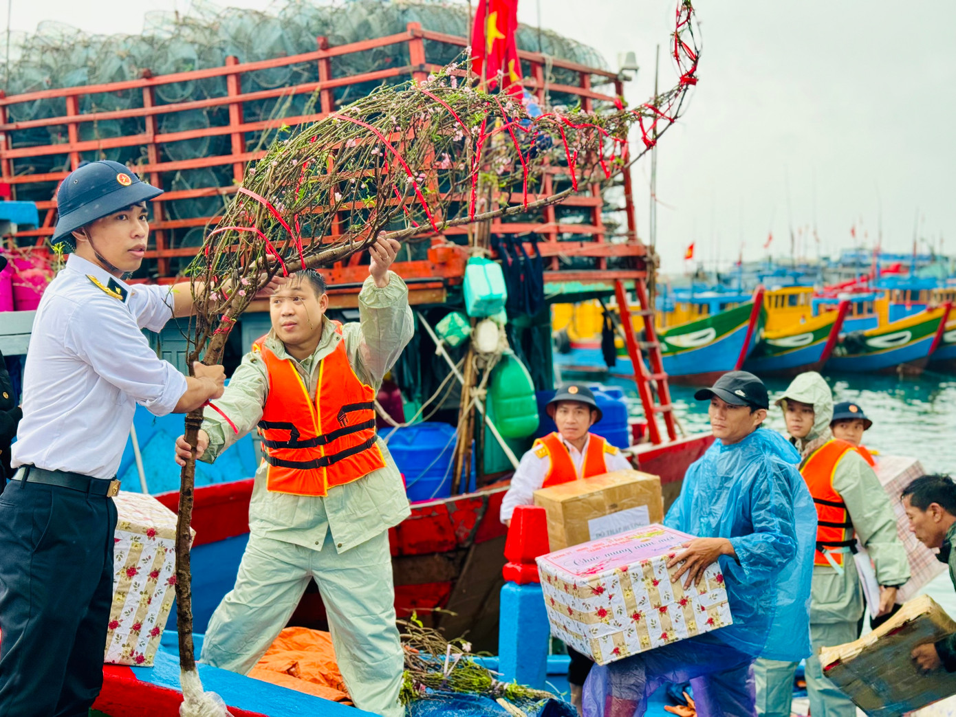 Thay mặt Đảng ủy, Bộ Tư lệnh Vùng 3 Hải quân và đoàn công tác, Chuẩn Đô đốc Nguyễn Đăng Tiến gửi lời thăm hỏi, chúc mừng cán bộ, chiến sĩ và nhân dân huyện đảo Lý Sơn đón Tết cổ truyền vui vẻ, mạnh khỏe, đầm ấm.
