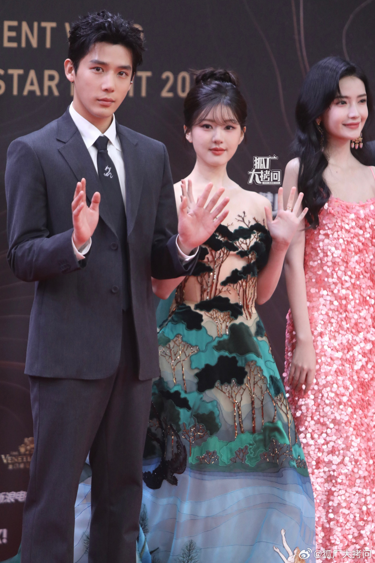 Điền Hi Vi và Vương Hạc Đệ cùng nhau xuất hiện, đại diện cho đoàn phim Đại Phụng Đả Canh Nhân. Thảm đỏ Tinh Quang Đại Thưởng năm nay chia là 2 hướng tiến vào là E (Extrovert - hướng ngoại) và I (Introvert - hướng nội).