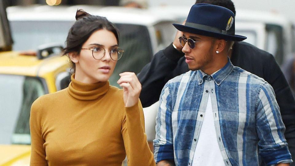 Kendall và Lewis Hamilton vướng nghi vấn hẹn hò từ một bức ảnh chụp nhóm tại cuộc đua ở Hamiltons (Anh) vào năm 2015. Lúc đó, Kendall đeo dây chuyền xích cỡ đại của tay đua người Anh.