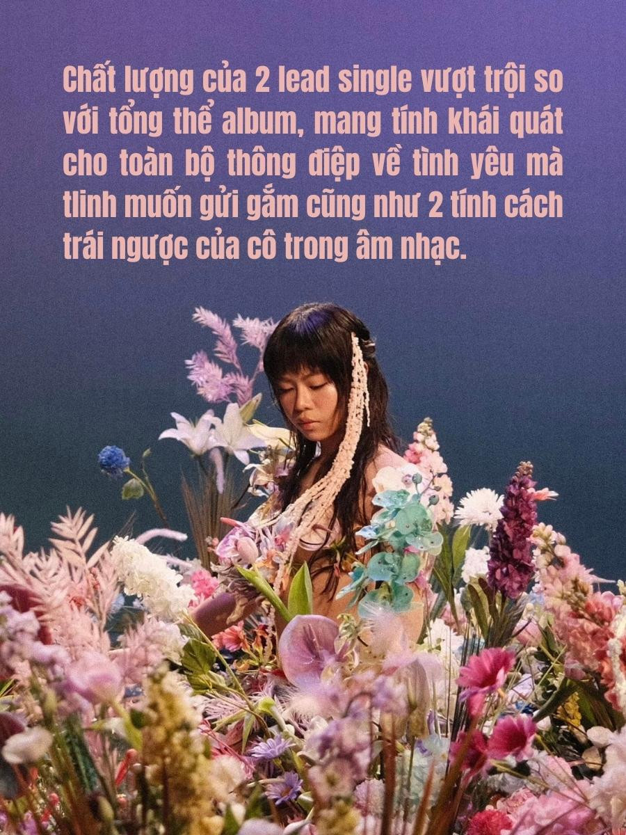 Nổi danh với những ca khúc Indie như Thích Quá Rùi Nà, gây chú ý với tư cách một rapper nữ triển vọng thông qua chương trình Rap Việt, tlinh lại chọn giới thiệu mình trong album đầu tay nghiêng về tư cách một nghệ sĩ R&B.