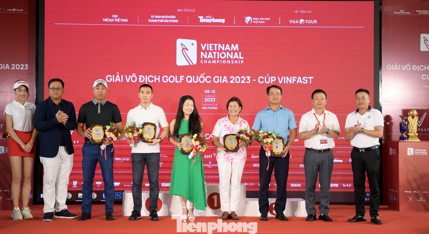 | Bí thư thường trực Ban Chấp hành T.Ư Đoàn Nguyễn Ngọc Lương; Giám đốc Sở Văn hóa và Thể thao TP Hải Phòng, đồng Trưởng ban Tổ chức Trần Thị Hoàng Mai; Đại diện Cục Thể dục Thể thao Nguyễn Quốc Hùng trao cúp và huy chương tặng các vận động viên nam xuất sắc nhất Giải Vô địch Golf Quốc gia năm 2023 - Cúp VinFast. |