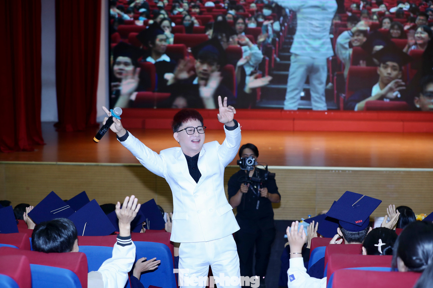 | Phát biểu khai mạc chương trình, nhà báo Phùng Công Sưởng - Tổng biên tập Báo Tiền Phong, Giám đốc Quỹ Hỗ trợ Tài năng Trẻ Việt Nam - chia sẻ: "Chương trình Nâng bước Thủ khoa luôn sát cánh, đồng hành cùng các em, nâng bước cho các em về cả vật chất lẫn tinh thần, để các em tự tin trong hành trình chinh phục tri thức, trở thành những công dân hữu ích cho xã hội. Các em ngồi đây hôm nay, dù phải đối mặt với những khó khăn tưởng chừng như không thể vượt qua nhưng các em đã biến nghịch cảnh đó thành động lực, biến ước mơ thành ngọn đuốc soi sáng hành trình học vấn của mình". |