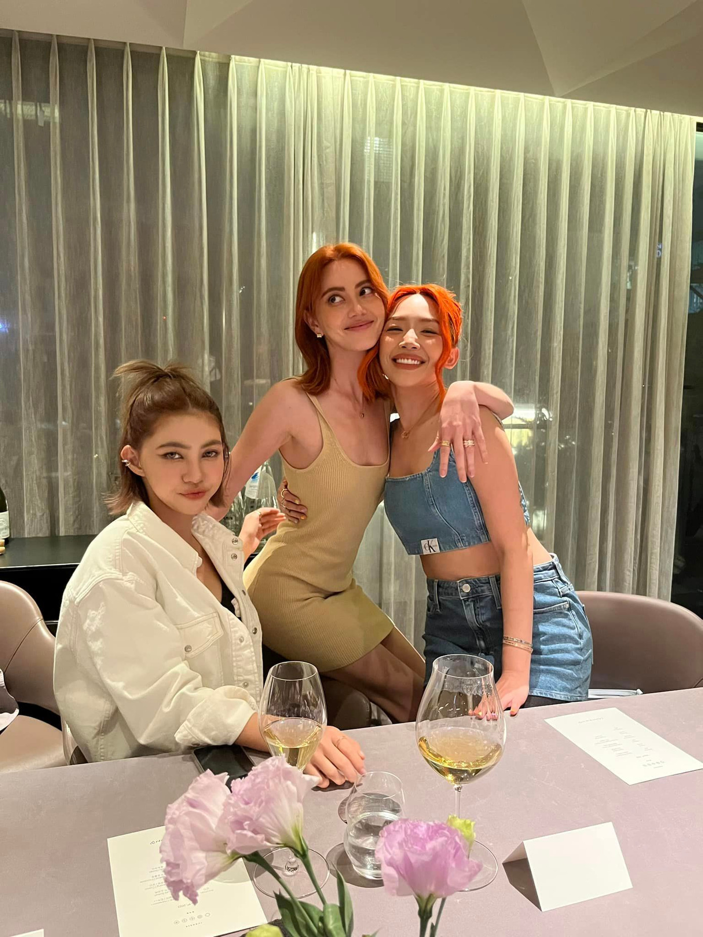 Tóc Tiên vừa có chuyến công tác tại Hàn Quốc. Theo những gì chia sẻ trên trang cá nhân, giọng ca 906090 là đại diện Việt Nam duy nhất được mời tham gia sự kiện ra mắt bộ sưu tập giới hạn Jennie (BLACKPINK) x CK. Trong bữa tiệc tối, bà xã Touliver đã có màn đọ sắc cùng Mai Davika.
