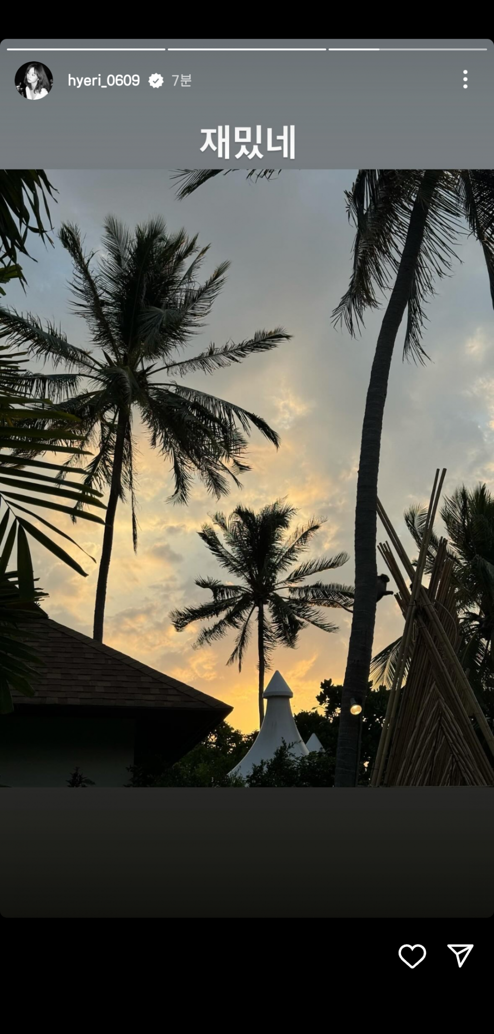 Giữa lúc cư dân mạng còn hoang mang, Hyeri đang du lịch tại Thái Lan đăng một Story Instagram với chú thích "Thú vị thật". Khoảng 1 tiếng sau, cô hủy theo dõi tài khoản mạng xã hội của bạn trai cũ Ryu Jun Yeol.